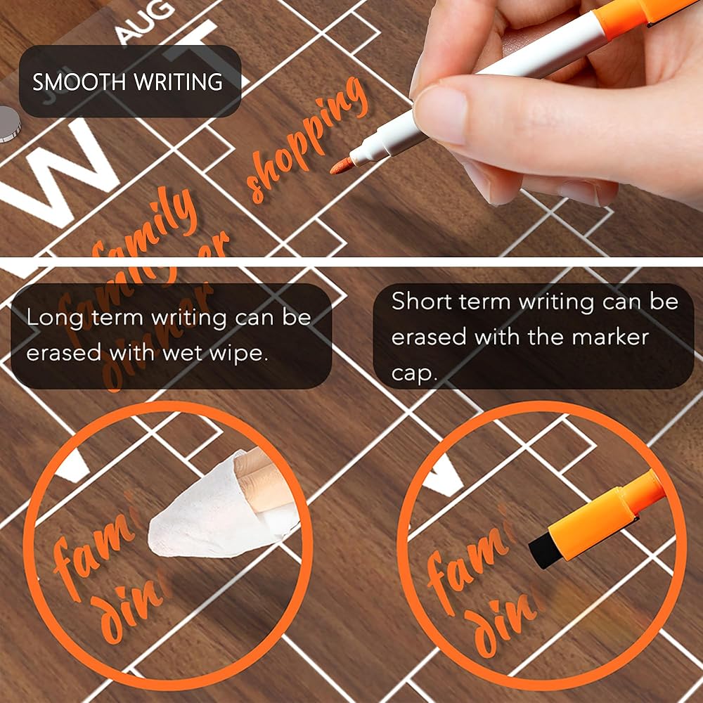 Easy to Erase with Wet Tissue and Included Cap Erasers: Short term writing can be erased with the marker cap, long term writing can be erased with wet wipes. No more struggling to remove chalk residue or ghosting.