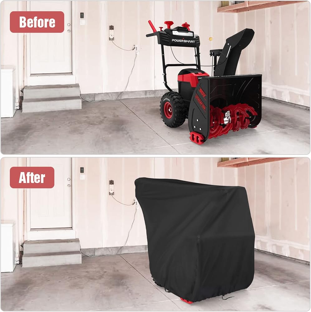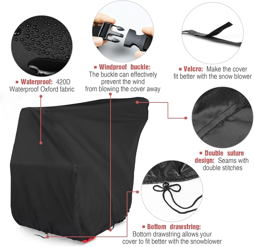 💨Keep Clean: The snow blower covers for outside keep your snow blower clean from dust and also protects your snow blower from being soiled by leaves, bird droppings when you leave it outside, and also protects the blowing snow The machine is not damaged by sunlight.