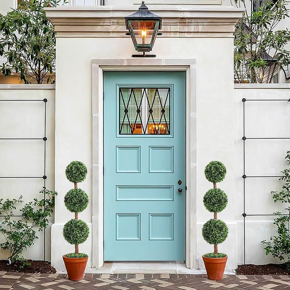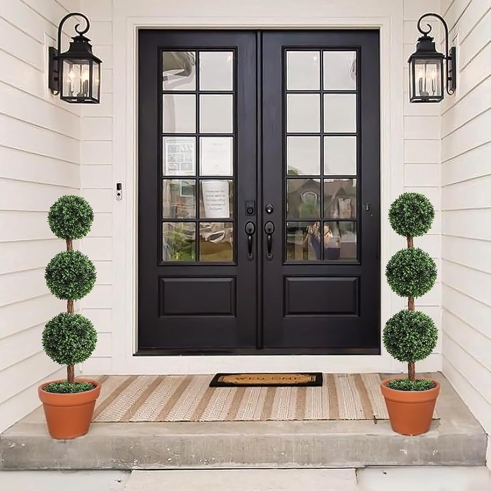 【Tip】:Usually faux shrubs triple ball topiaries trees need to be reshaped by hand after transport, as some parts of the leaves may be slightly deformed during transport. You can manually reshape artificial boxwood ball trees to create your own tree.