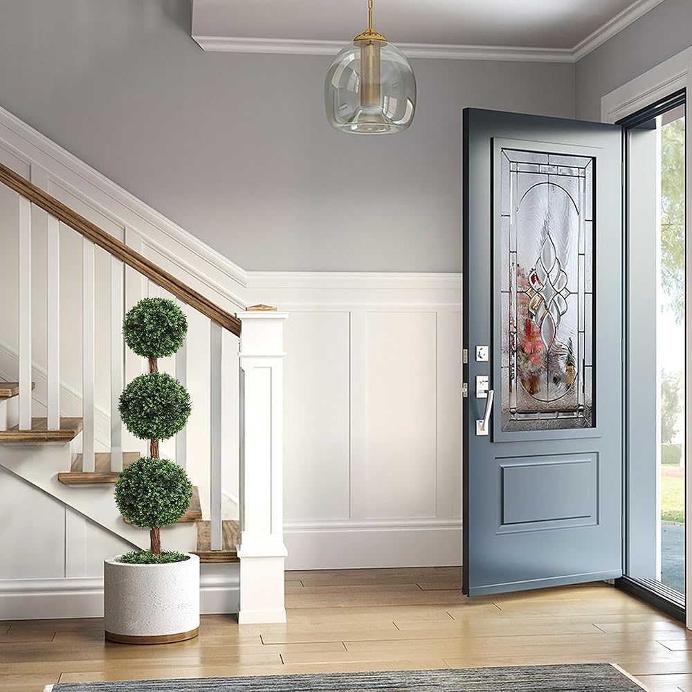 Why choose this outdoor artificial topiaries boxwood triple ball trees? Faux boxwood plants outdoor ball triple topiary tree are made of high quality materials. We use real vines wrapped in real wooden poles to restore the authenticity of artificial boxwood topiaries ball tree to the greatest extent possible, making it look more realistic! At the same time, the leaves are also encrypted on the original model, so that it looks more dense, placed in the doorway or garden and any place you want to put, you will like it more and more.