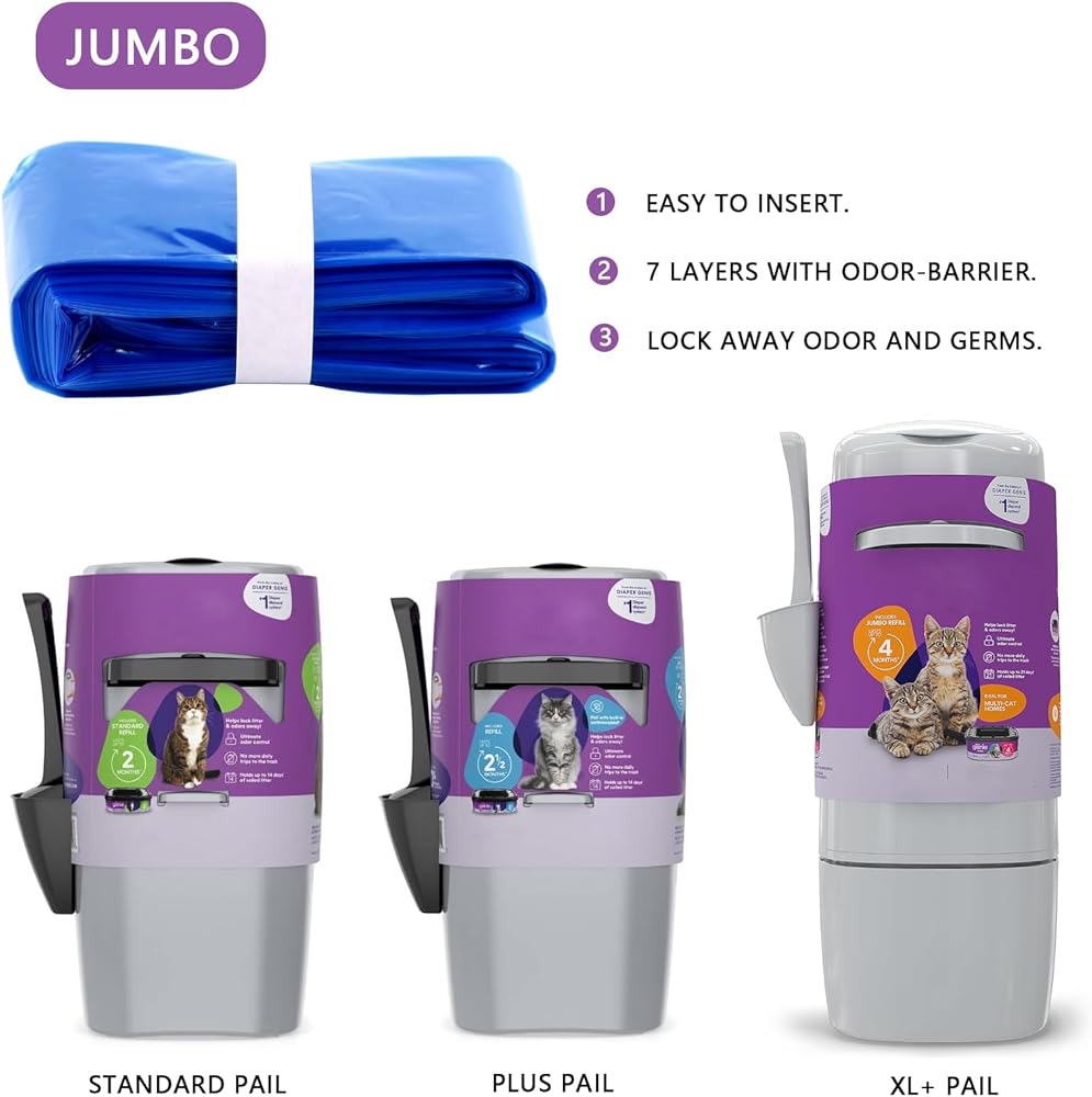 Jumbo Refills are specifically designed to fit Litter Genie Standard, Plus, and XL+ Pails. This is NOT compatible with the Easy Roll or XL pails.(Original refill cartridge is not included. Save and reuse your empty refill cartridges!)