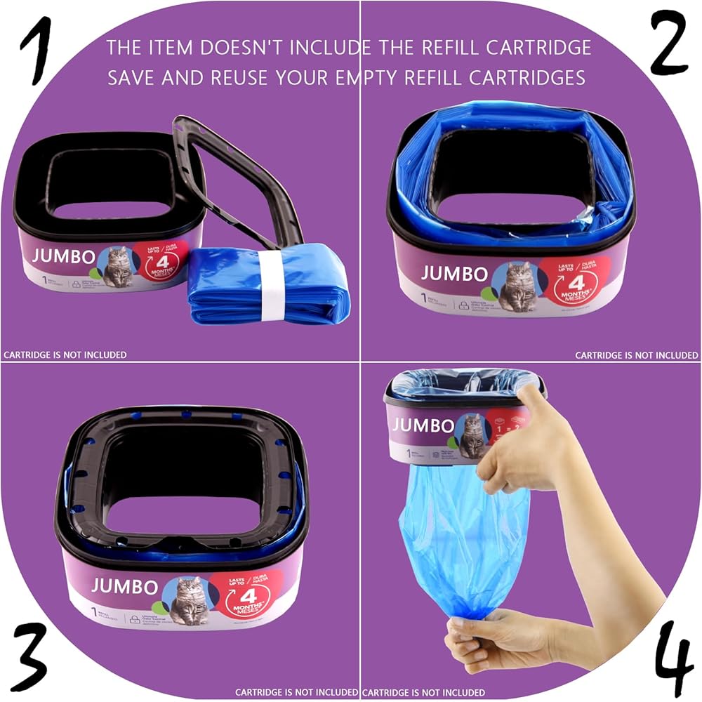 2 Pack Jumbo Litter Refill Bags, 1x Installation Manual, cartridge not included