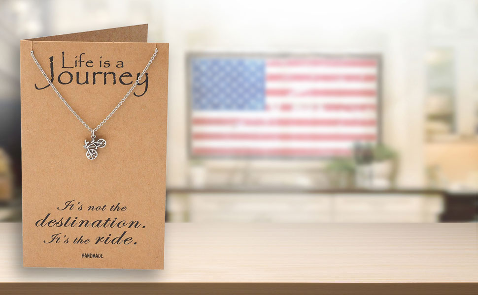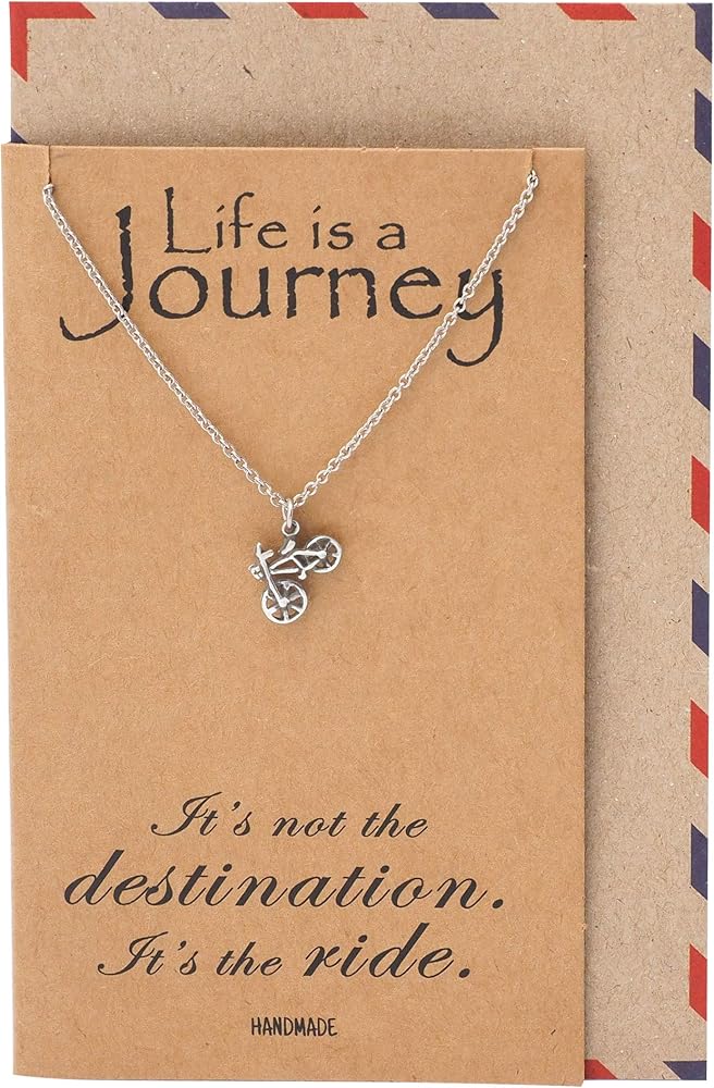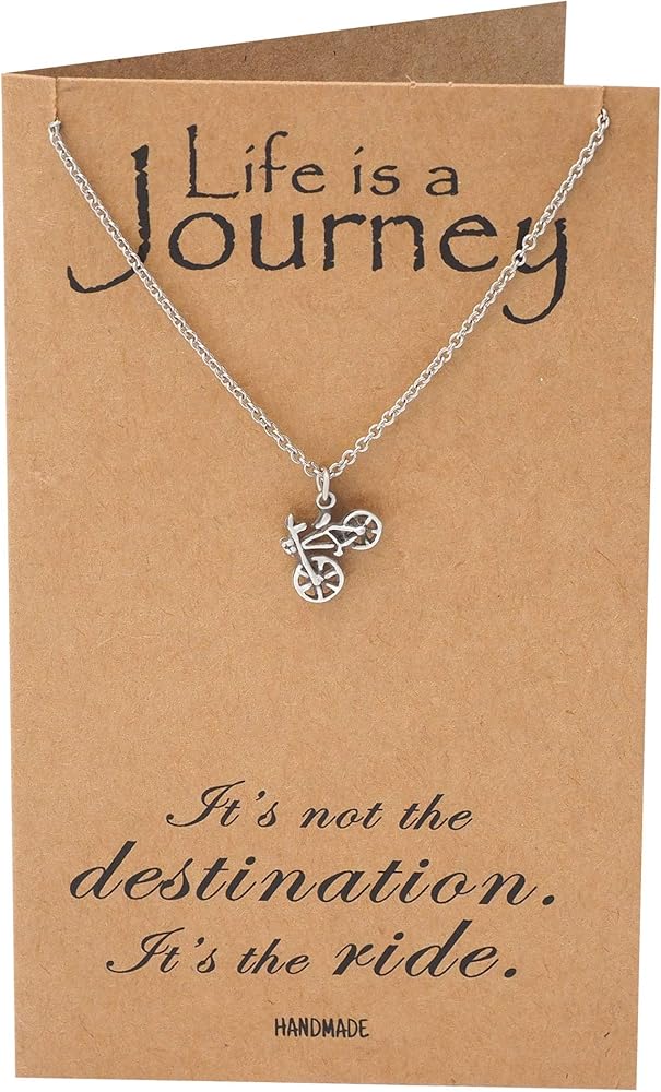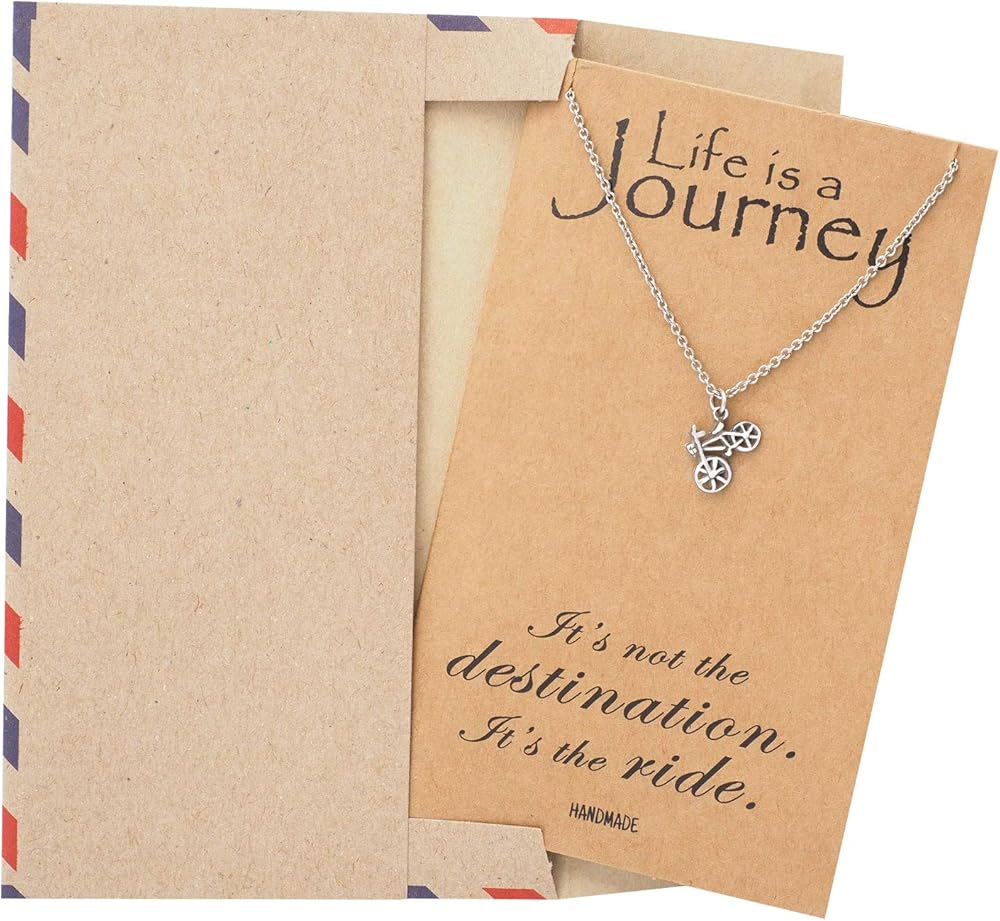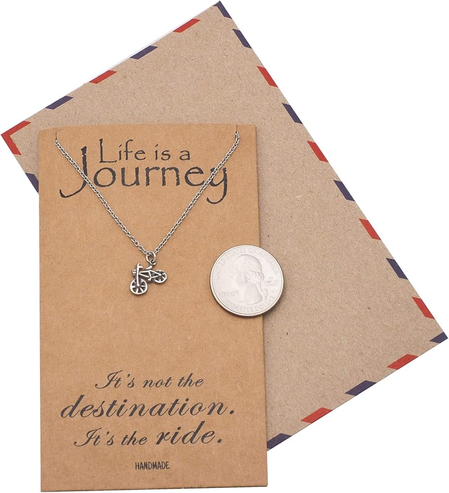 تشيوان المجوهرات قلادة دراجة صغيرة، رحلة المسافر قلادة سحر، هدايا لراكبي الدراجات والتجول، الحد الأدنى من القلائد اللذيذة، مجوهرات اللياقة البدنية مع بطاقة اقتباس