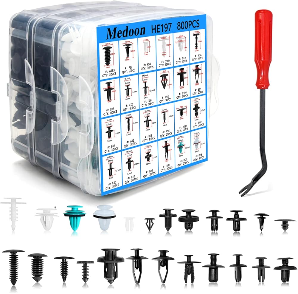 32 مقاسًا الأكثر شيوعًا: 1115 قطعة من مشابك تثبيت الدفع التلقائي بما في ذلك 32 مقاسًا أكثر شيوعًا، و4 أنواع مختلفة من الأدوات مع مزيل قفل واحد و100 وسادة إسفنجية، رائعة لصوت السيارة، ولوحة الباب، والقوالب، ونظام تزيين النوافذ، أو تركيبها أو إزالتها، ومناسبة بشكل خاص بي ام دبليو بنز تويوتا هوندا نيسان سوبارو أودي مازدا فورد جنرال موتورز كرايسلر.