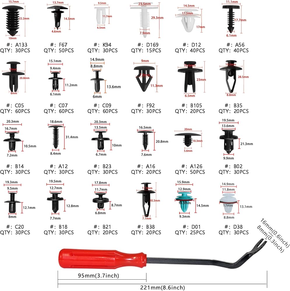 مقاطع Car Retainer Clips Cars Cars Kits 24 الأكثر شعبية أحجام 801 PCS لوحة الباب مقاطع القطع المقطوعة 1 PCS مزيل Ford For Ford GM Toyota Honda Chrysler BMW Benz Nissan Subaru Audi Mazda