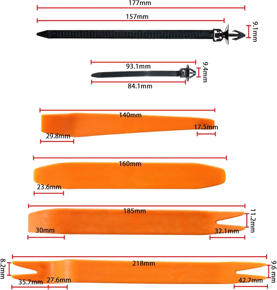 تصميم مريح: تتميز مجموعة أدوات التشذيب التلقائية ومشابك التشذيب التلقائية بتصميم مريح مع ميزات خفيفة الوزن وسهلة الحمل مما يوفر جهدًا فعالاً في توفير العديد من التشذيب الداخلي والخارجي للسيارة في أقصر وقت. هذه المجموعة موجودة في الصندوق ولا حاجة للذهاب إلى متجر قطع غيار السيارات للبحث عن السحابات المختلفة.