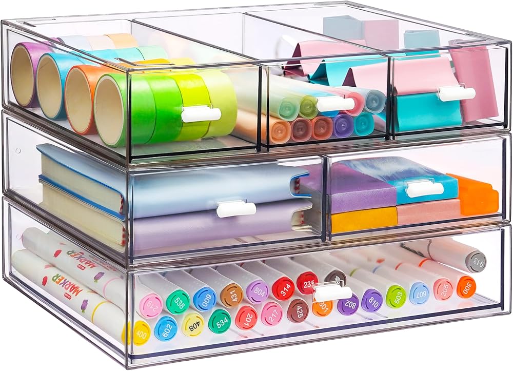 【حافظ على الأدراج الشفافة منظمة】6 أدراج مكتبية مرئية لتناسب العناصر ذات الأحجام المختلفة. توفر مساحة كافية لتخزين ضرورياتك اليومية لسهولة الوصول إليها، والاستفادة الكاملة من مساحة مكتبك والحفاظ على كل شيء منظمًا.