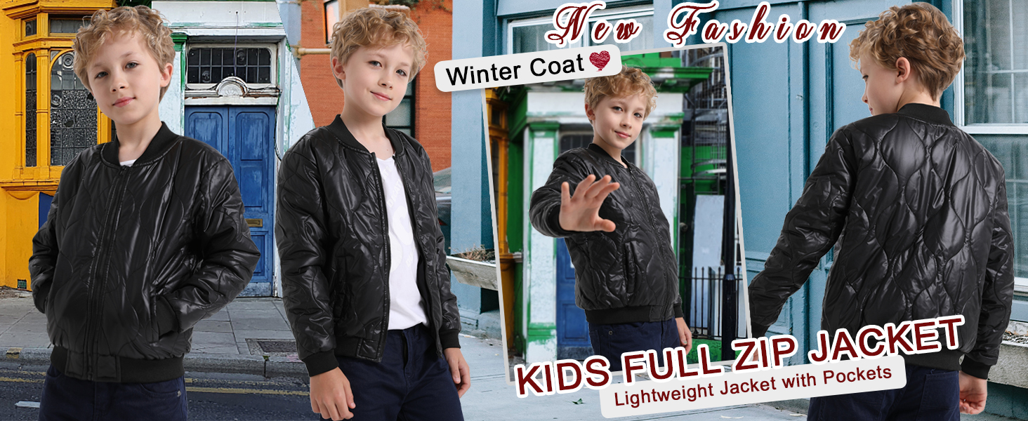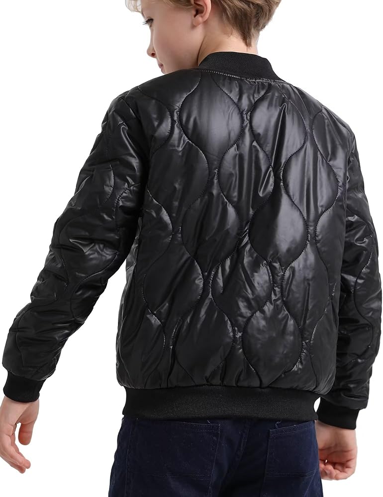 【تنبيه المقاس】: مقاس سترة بومبر المبطنة للأولاد هو 4T-12T. إذا كنت تفضل المقاس الفضفاض، فنوصي باختيار مقاس أكبر.