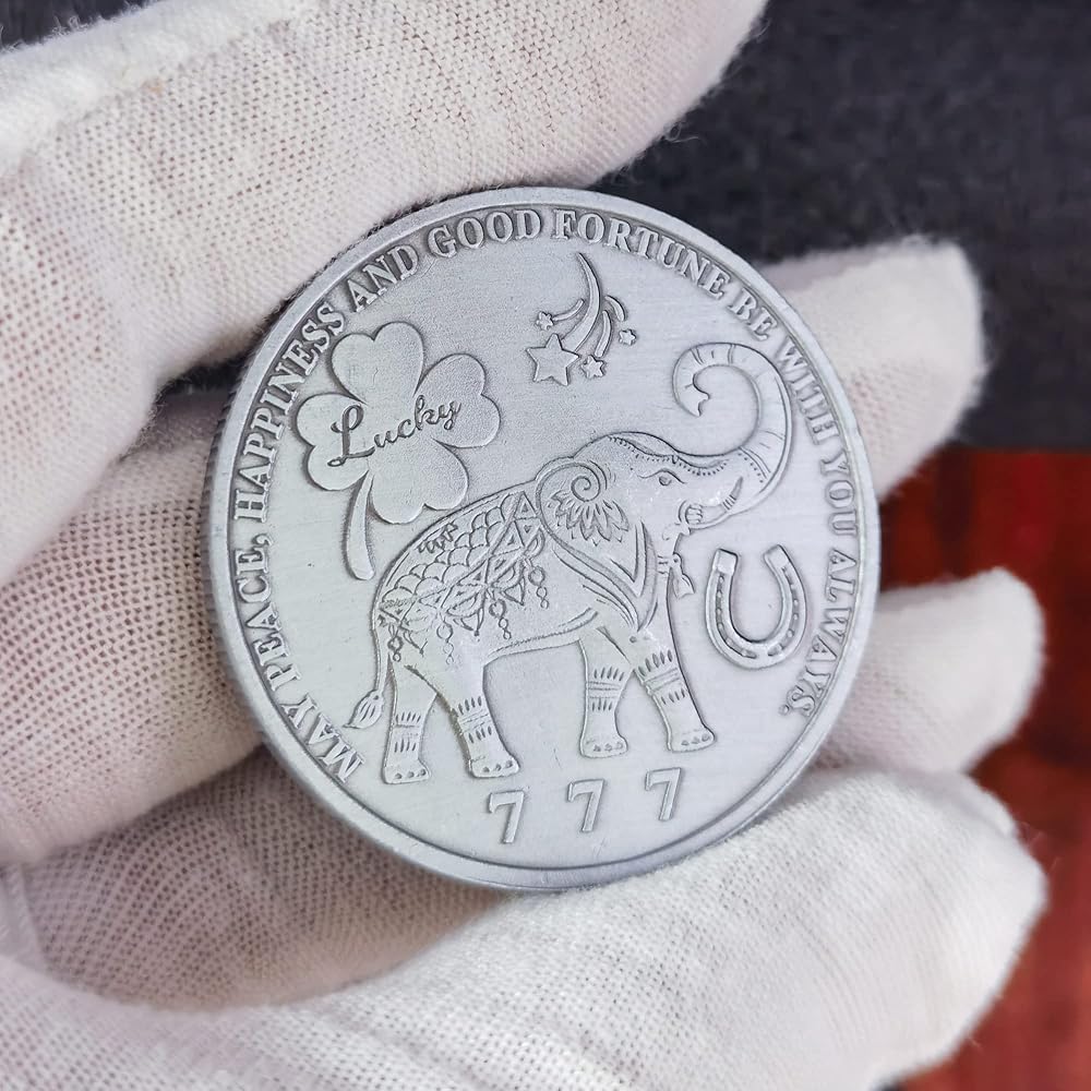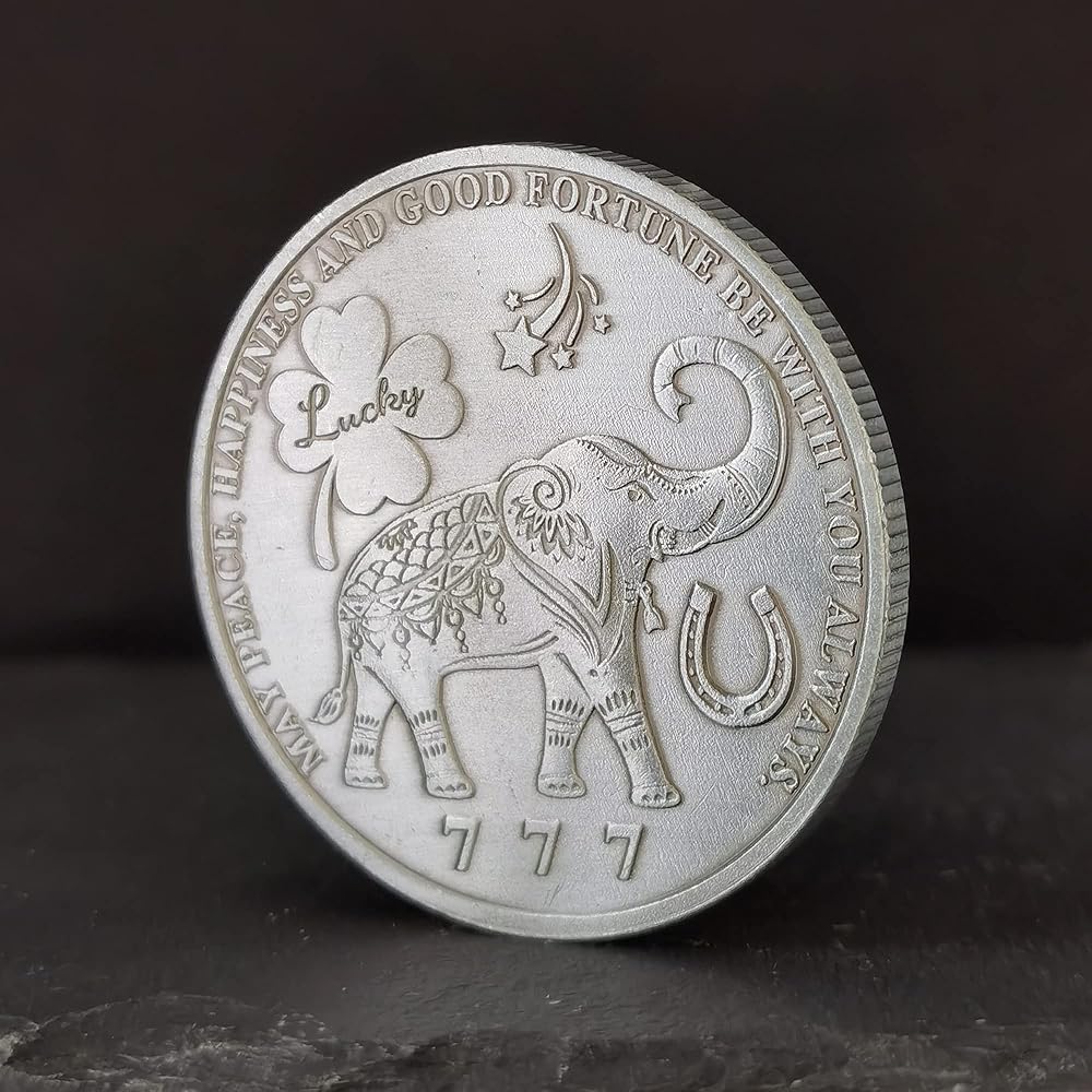 ➤Symbolism of Luck and Fortune: The reverse side showcases an array of additional lucky elements. These include an elephant, a horseshoe, a clover imprinted with "lucky," a shooting star, and three "7" digits. Surrounding these elements, an inscription reads "MAY PEACE, HAPPINESS, AND GOOD FORTUNE BE WITH YOU ALWAYS," amplifying the wishes of prosperity and blessings.