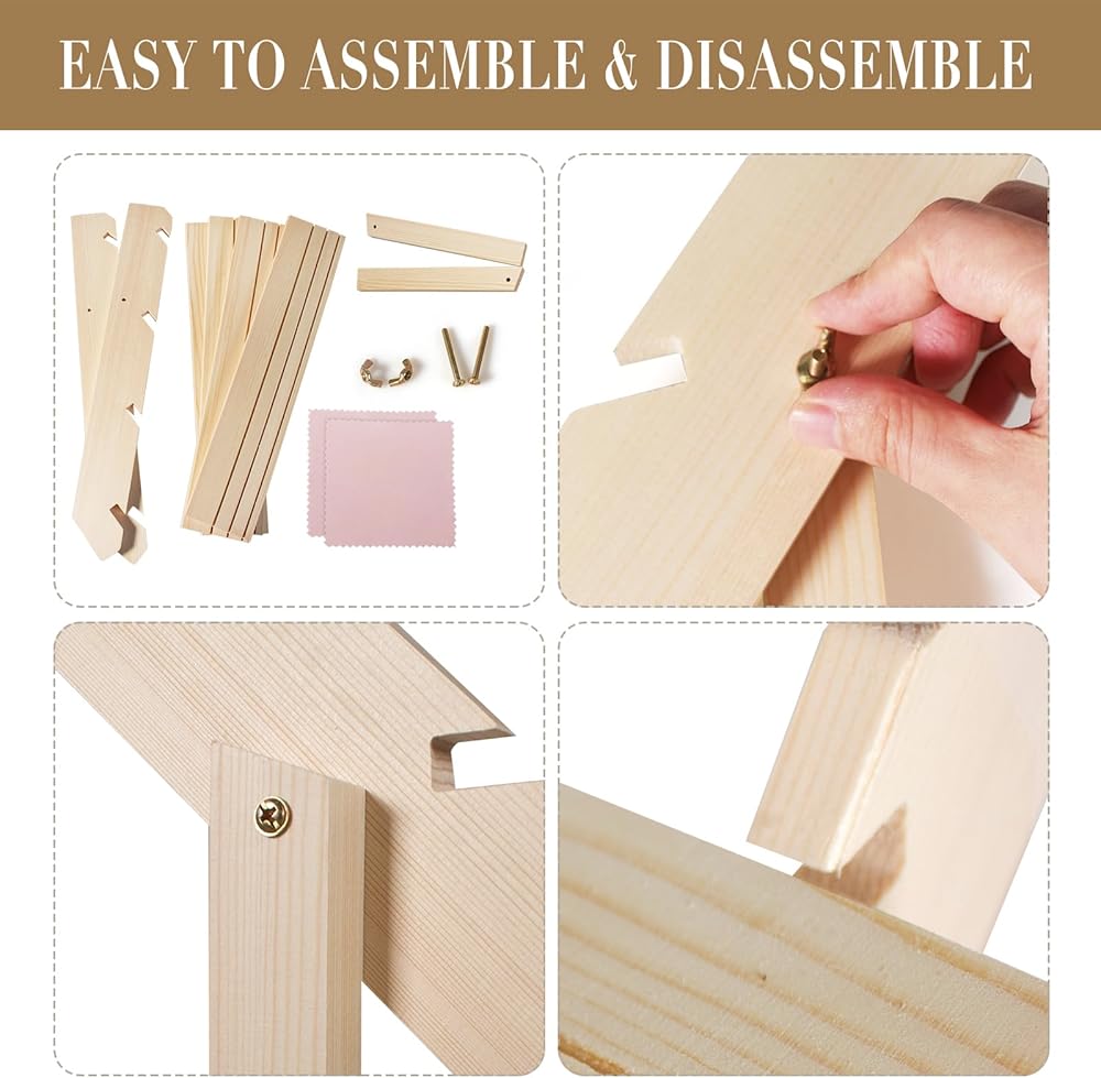 • 🍸【سهلة التركيب】يمكن تجميع رافعة العرض الخشبية في دقائق دون أي أدوات. أولاً، قم بتثبيت ساقي الإطار الخشبي معًا، واضبط الارتفاع، ثم قم بتداخل الألواح الخشبية الأربعة.