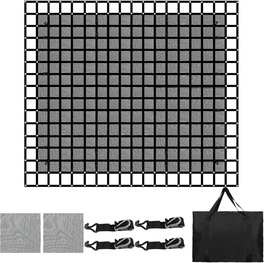 الحجم: كبير جدًا 10 × 12 قدم، حجم الثقب: 6.4 × 6.4 بوصة، سعة تحمل 1500 رطل، يمكن تمديد الأشرطة حتى 70 بوصة، كل حزام مزود بخطاف على شكل حرف S وحلقة على شكل حرف D لربطها بشحنات مختلفة