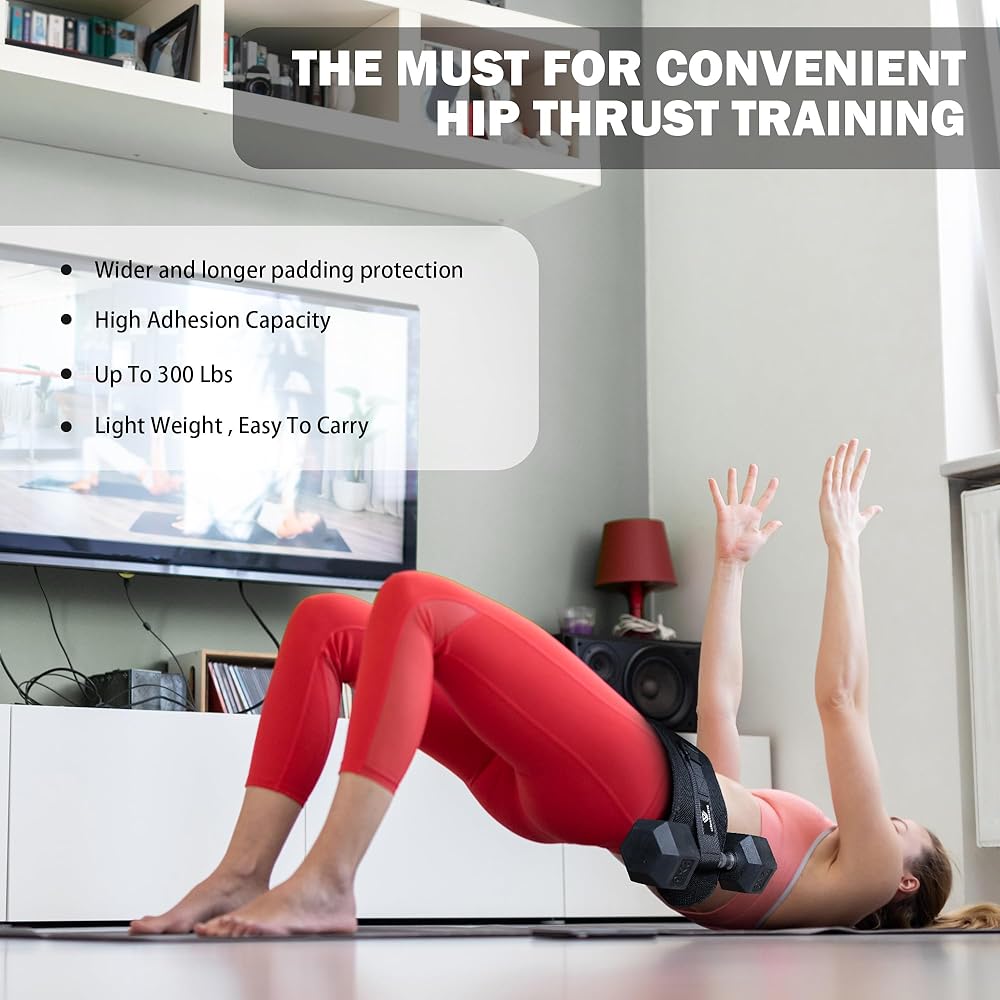 أداة تدريب متعددة الاستخدامات: أضف الثبات والكثافة إلى تدريباتك مع حزام دفع الورك الخاص بنا. مثالية لضغطات الورك والجسور الألوية وغيرها من التمارين، فهي تساعدك على بناء عضلات أرداف أقوى وأكثر شكلاً.