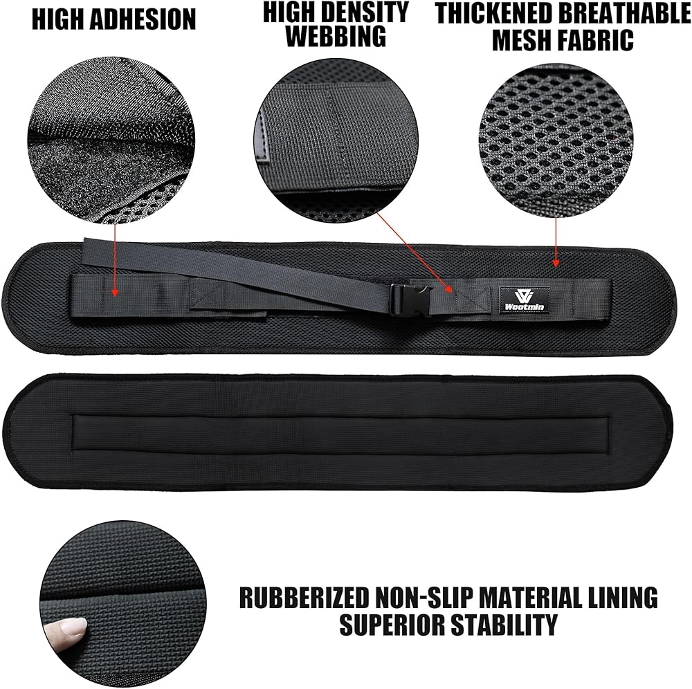 راحة معززة: يتميز حزام دفع الورك المطور بالكامل بتصميم مبطن أوسع وأكثر سمكًا لتعزيز الراحة أثناء دفعات الورك، مما يقلل الضغط على أسفل الظهر والبطن.