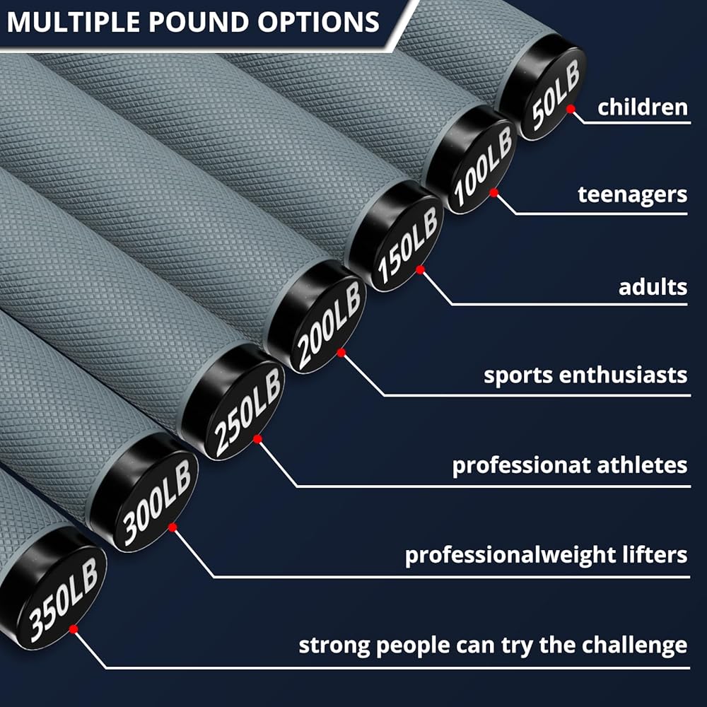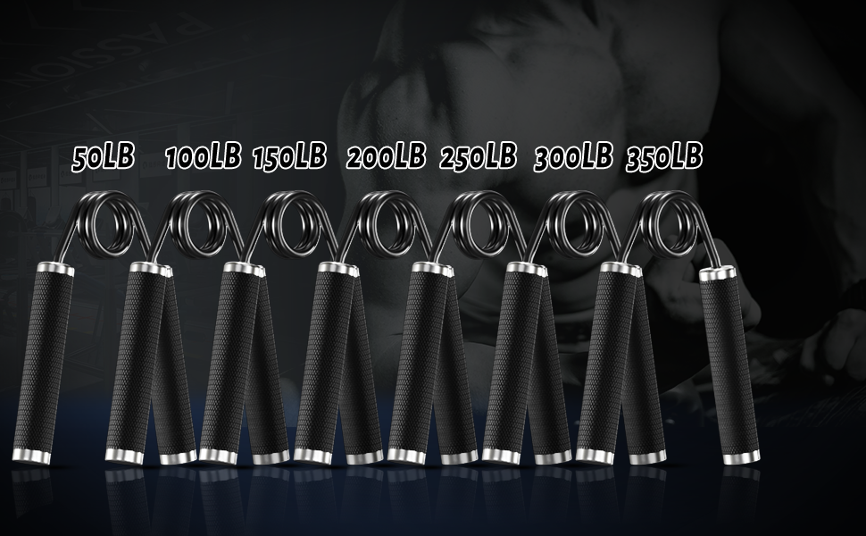 CHOICE OF SET: There are 2 different sets of combinations available: Choose among a 4-pack containing hand grippers ranging from 50-200 pounds, a 6-pack with hand grips ranging from 100-350 pounds. Each hand grip in increments of 50 pounds suitable for all ages and all hand sizes.