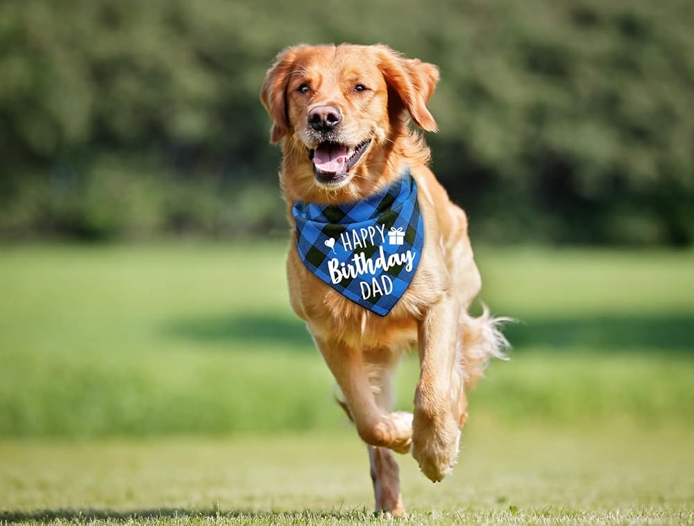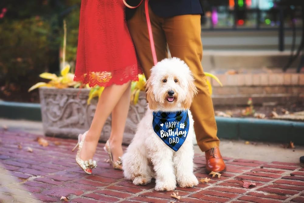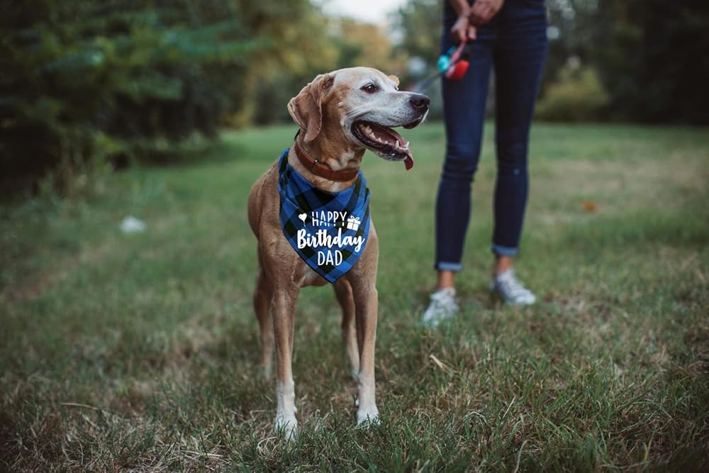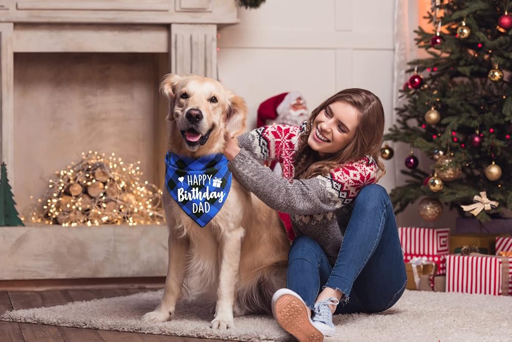 مضحك الأزرق منقوشة عيد ميلاد سعيد أبي الكلب المطبوعة مثلث باندانا، صغير متوسط ​​كبير صبي كلب أعياد ميلاد وشاح مريلة الملحقات لمحبي الحيوانات الأليفة هدية