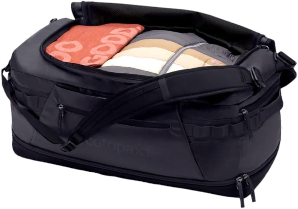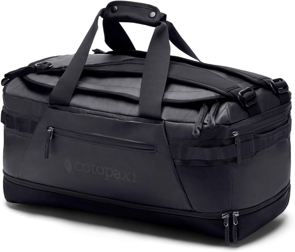 Our bestselling Allpa has transformed into a burly travel duffel that carries like a backpack whenever you please. This pack is available in two sizes, and the 50L is the smaller size. Made from TPU-coated 1000D polyester and lightweight, more durable 840D ballistic nylon paneling.