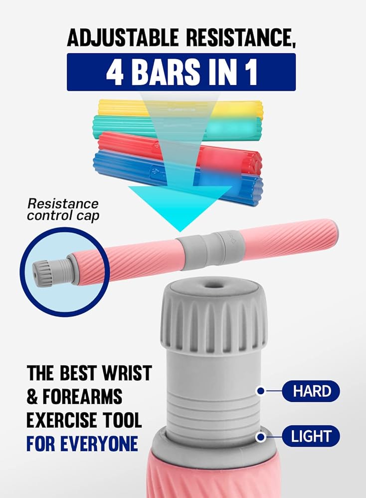 مقاومة قابلة للتعديل، شريط مقاومة 4 في 1 - لماذا يجب عليك شراء قضبان متعددة اعتمادًا على كثافة مختلفة؟ أنت بحاجة إلى مقبض GD Twist Grip واحد فقط. يمكن تعديل المقاومة إلى مستويات مختلفة بحيث تناسب تمامًا مستوى قوة ساعدك. عليك فقط تشغيل غطاء التحكم في المقاومة. كلما أصبح الغطاء أقصر، كلما كانت المقاومة أقوى. يمكن للنساء وكبار السن البدء في ممارسة الرياضة بأقل مقاومة. أعلى كثافة قوية بما يكفي للرجال الأقوياء.
