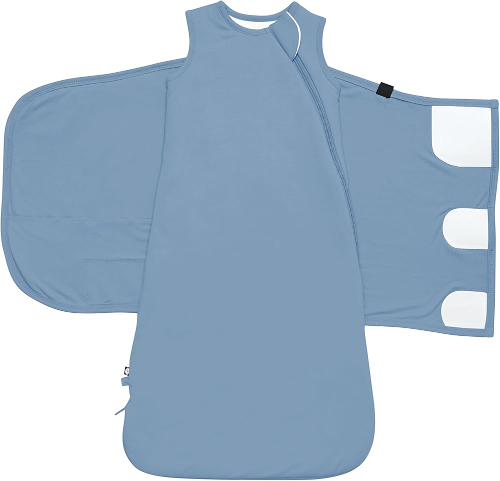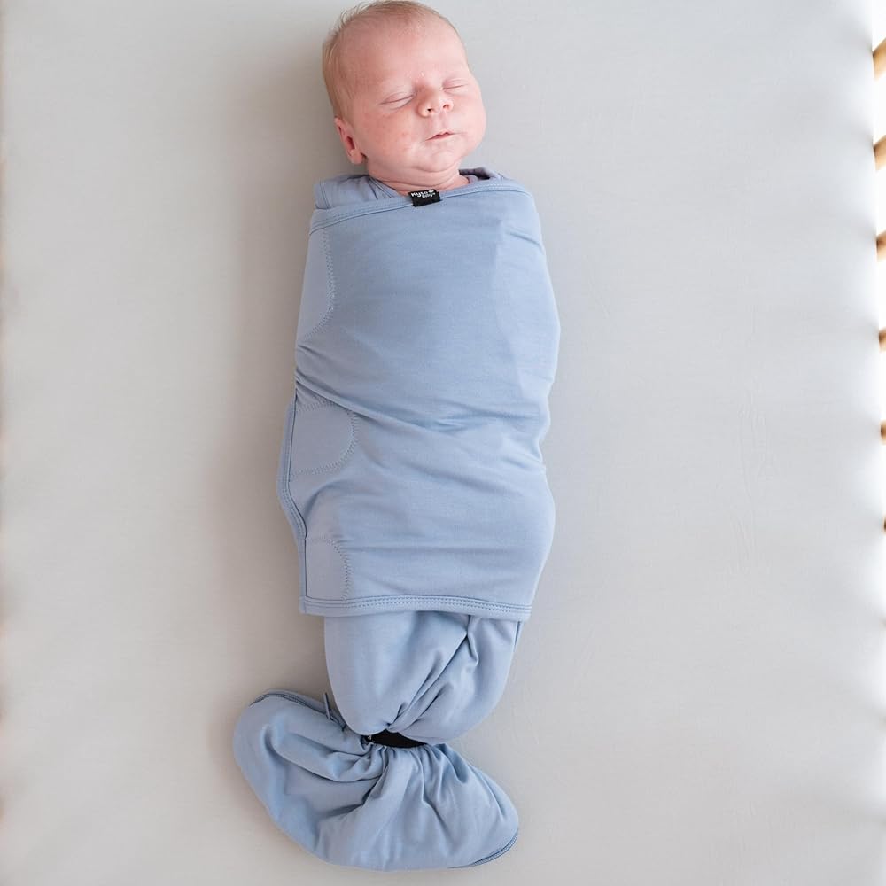 Our Sleep Bag Swaddler is an all-in-one sleep system that comforts your baby from the newborn stage to the next. Made from our signature bamboo made from rayon, our patent-pending sleep bag swaddler functions as both a swaddle and a 1.0 sleep bag. The attached swaddle wrap features a Velcro closure for a secure and adjustable fit, and is fully removable once swaddling is no longer recommended. There's also a removable elastic loop that is fastened with a snap closure that can be placed around the bottom of the sleep bag. The additional step of tightening the sleep bag helps for little ones who haven't fully grown in to their new sleep bag yet. Underneath the wrap is our award-winning sleep bag.
