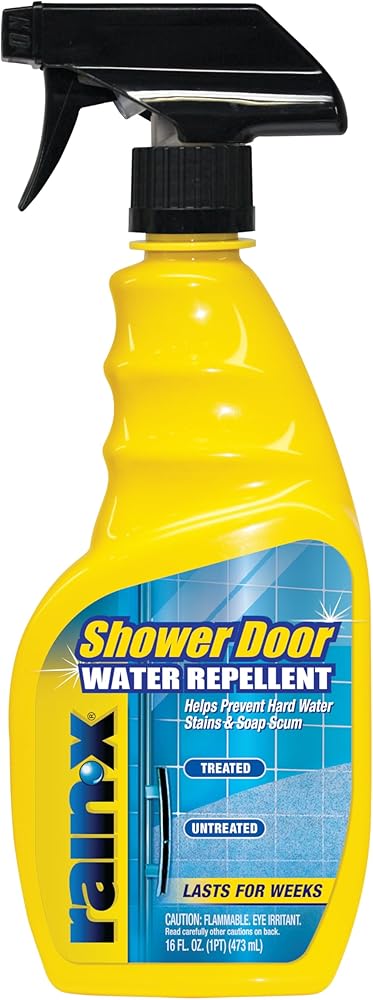 Rain-X shower door water repellent uses advanced technology that causes water to bead and slide off on glass surfaces. Regular use helps prevent hard water stains, soap scum, and grime build-up on your glass Shower door keeping it looking clean for weeks.