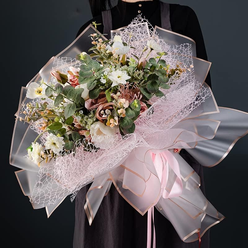 Delicate Style: paper for flowers bouquets is designed in translucent style, with a frosting look, the edges are designed in gold color, well matching.