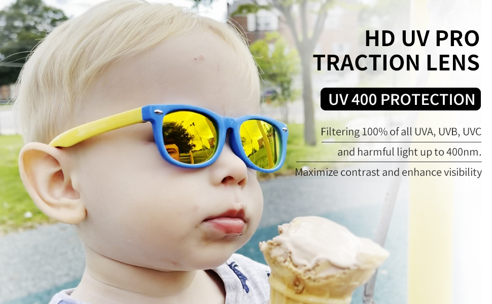 تتميز هذه النظارات الشمسية للأطفال الصغار بعدسات مستقطبة، مما يقلل من الوهج ويضمن رؤية واضحة أثناء الأنشطة الخارجية.