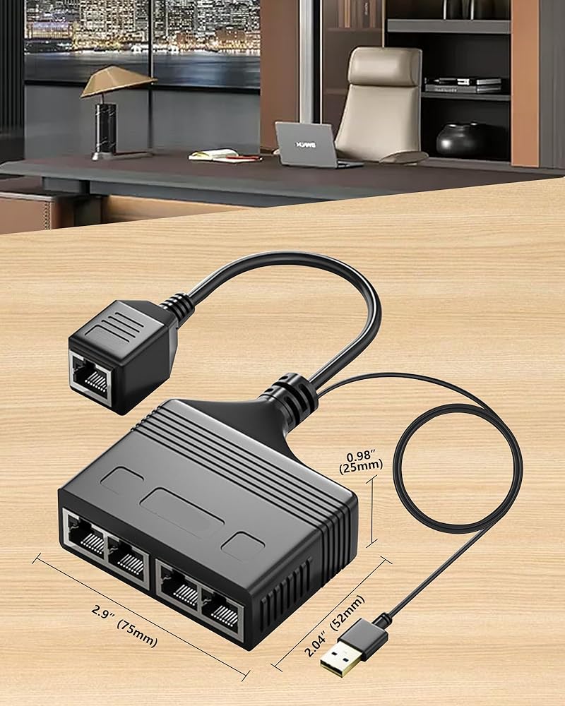 1x Ethernet Splitter 1 to 4 with 3.3FT Typec cable