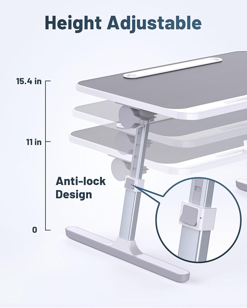 • 💡【ارتفاعات وزوايا قابلة للتعديل】مكتب كمبيوتر محمول قابل للتعديل - 5 ارتفاعات (10.5 بوصة إلى 15.2 بوصة) و3 زوايا (0 درجة إلى 36 درجة) للاستخدام المريح.