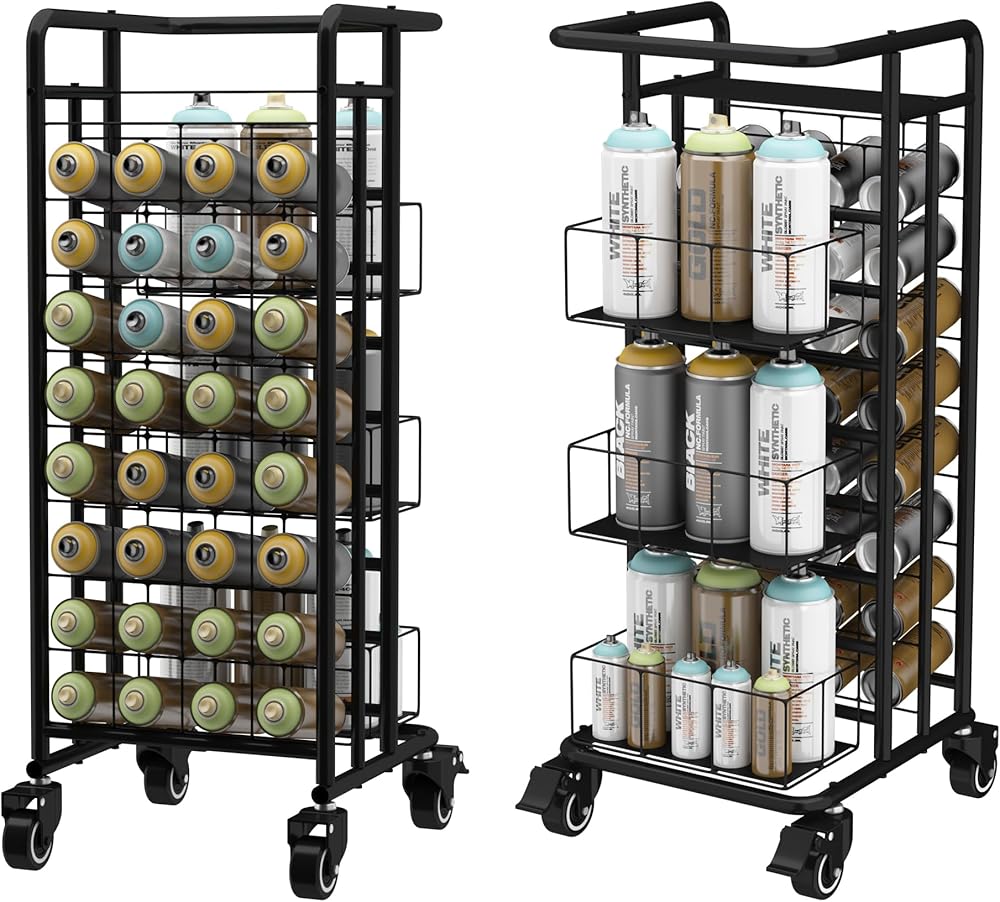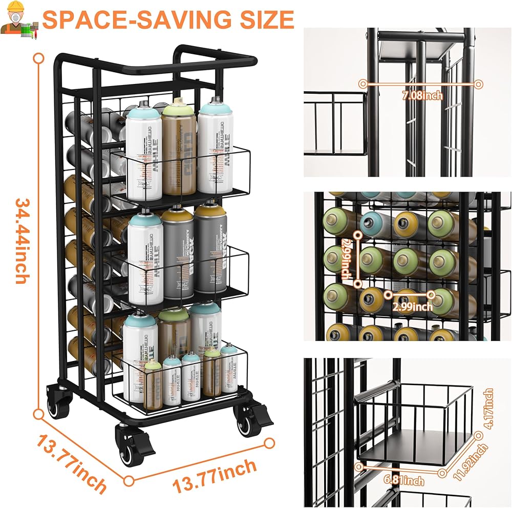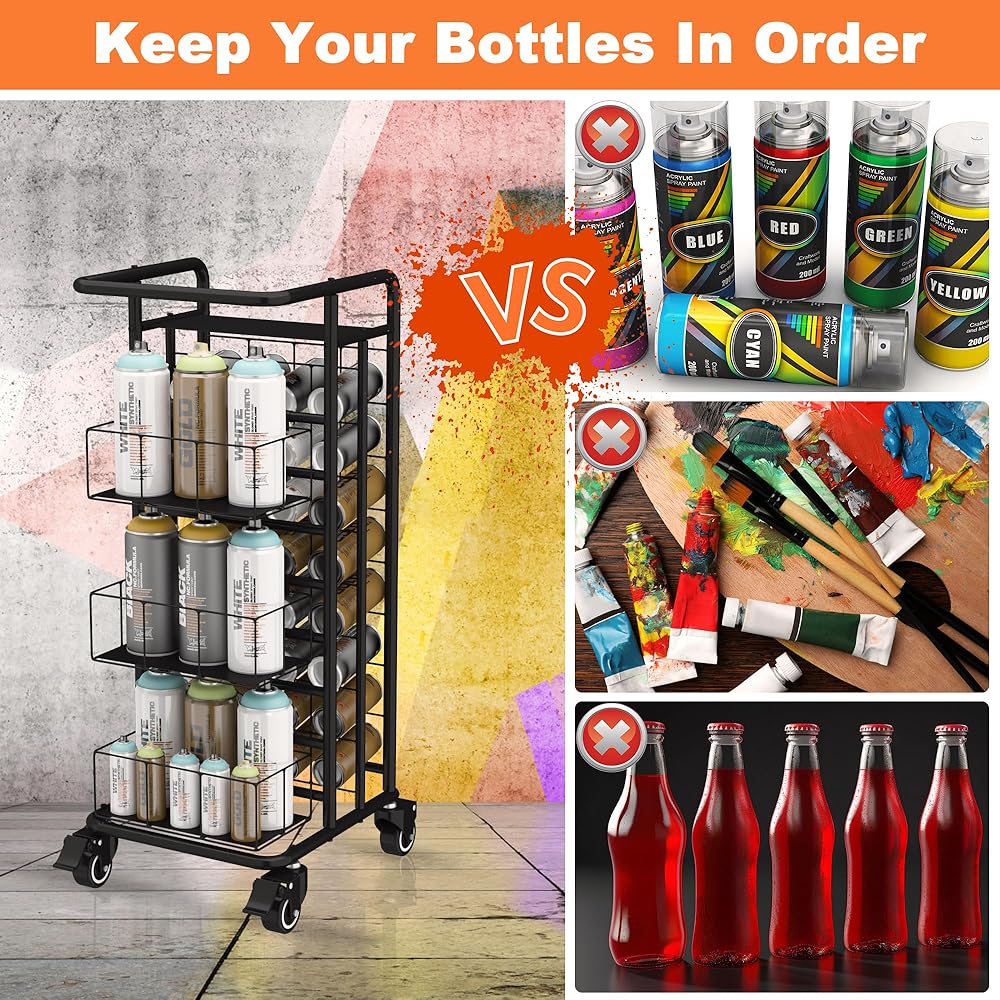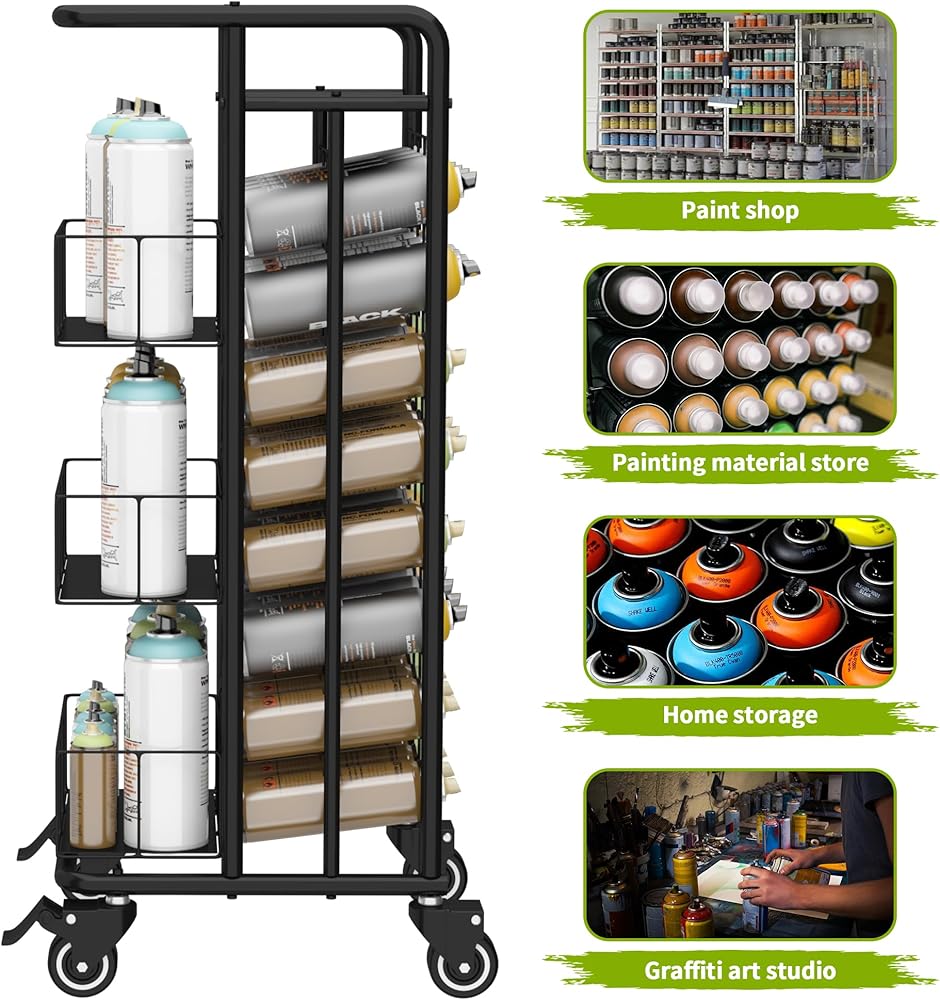 【عربة متعددة الوظائف】منظم زجاجات الطلاء الخاص بنا بعجلة ليس مناسبًا فقط لتخزين علب رذاذ الطلاء، ولكن أيضًا يمكن تخزين زجاجات النبيذ أو غيرها من المنتجات المعلبة والمعبأة في زجاجات، وتستخدم كورشة عمل أو مستودع أو قبو نبيذ أو حتى عربة منزلية، استخدام المزيد من السيناريوهات.