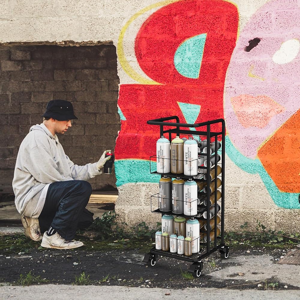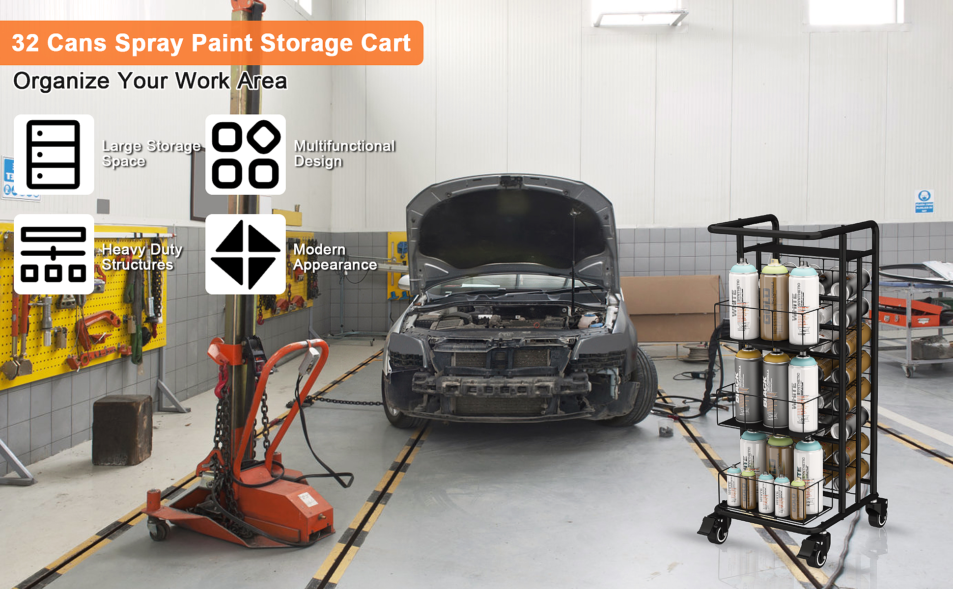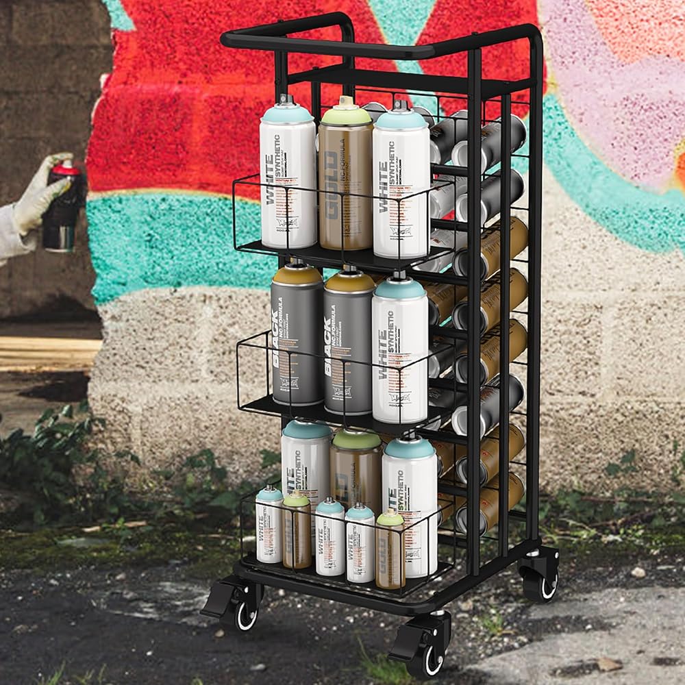 【عربة متعددة الوظائف】منظم زجاجات الطلاء الخاص بنا بعجلة ليس مناسبًا فقط لتخزين علب رذاذ الطلاء، ولكن أيضًا يمكن تخزين زجاجات النبيذ أو غيرها من المنتجات المعلبة والمعبأة في زجاجات، وتستخدم كورشة عمل أو مستودع أو قبو نبيذ أو حتى عربة منزلية، استخدام المزيد من السيناريوهات.