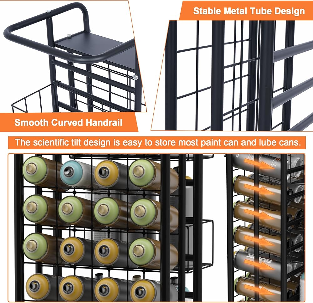 Yeshine رذاذ الطلاء تخزين الرف 8 الطبقة 32 فتحة رذاذ معدني يمكن حاملي الثقيلة عربة رذاذ الطلاء أو التشحيم يمكن الهباء الجوي يمكن حامل رذاذ الطلاء يمكن الرف المنظم للمرآب وغرفة العمل الحرفية