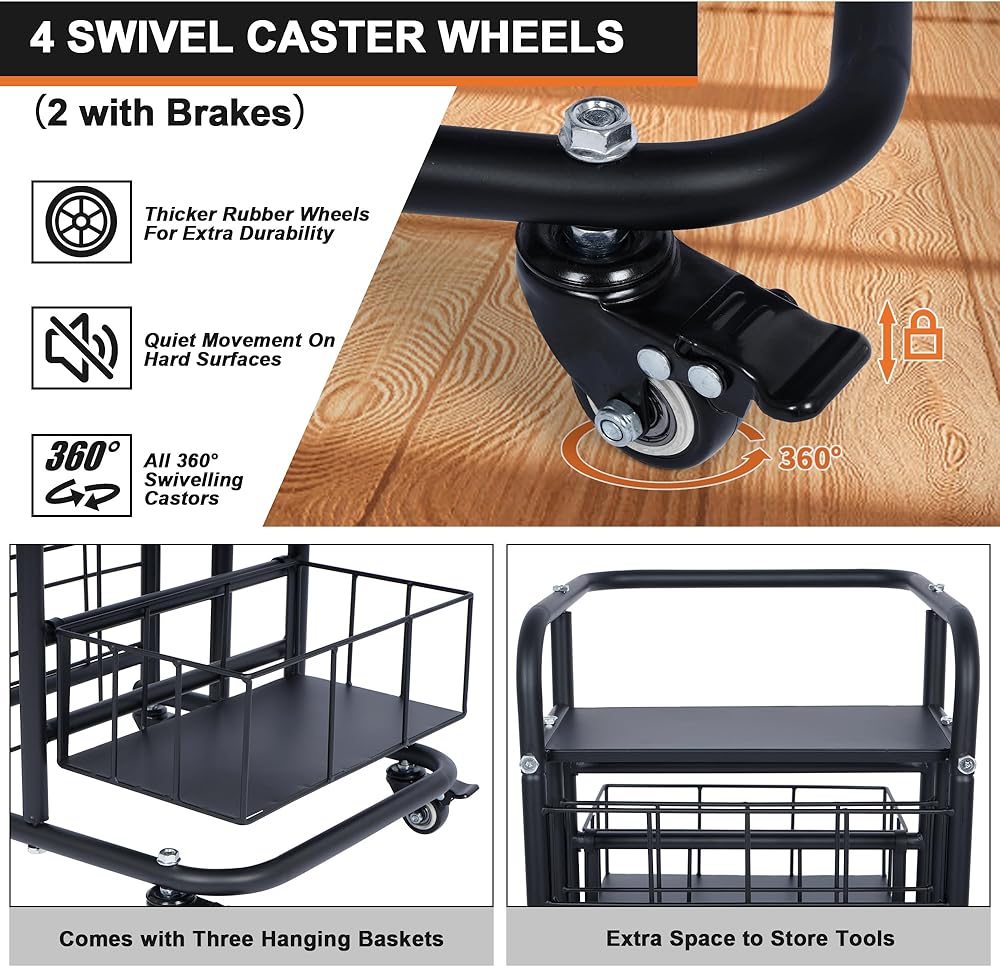 【حركة مرنة】: عربة الأيروسول الدوارة مجهزة بـ 4 عجلات عالمية (2 منها قابلة للقفل)، يمكنك تحريك عربة الطلاء وتثبيتها بسهولة، مما يسمح لك بتحريك العربة بسهولة عند القيام بمساحة كبيرة. عمل اللوحة.