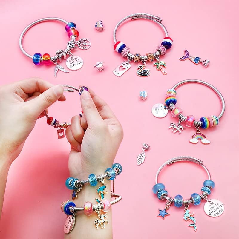 Lovely Birthday Gifts/Christmas Presents:This charm bracelet making kit makes an excellent gift for girls who enjoy DIY projects.It's not only entertaining but also encourages their artistic expression and enhances their fine motor skills.Perfect arts & crafts toy for Christmas,birthdays,holidays,or any occasion that girls will cherish.