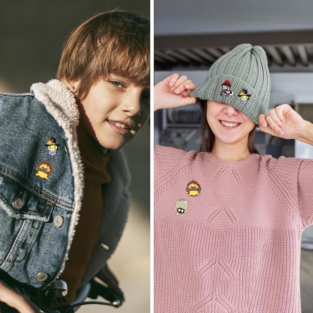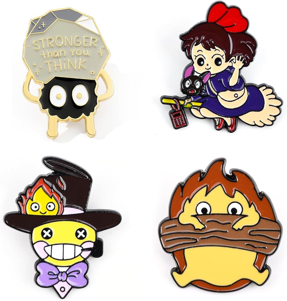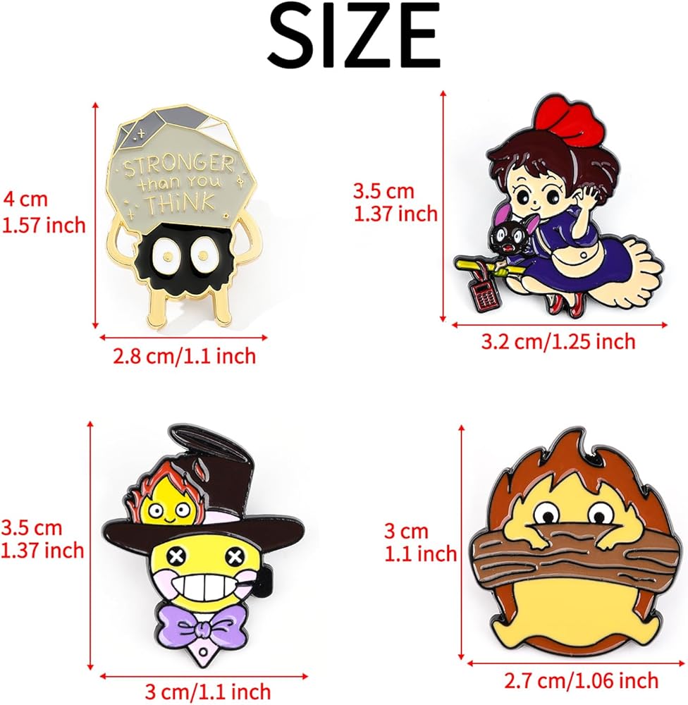The size of the pins is about 1.0-1.6 inches. 4Pcs No-repeat character badge collection. Set includes all pins pictured.
