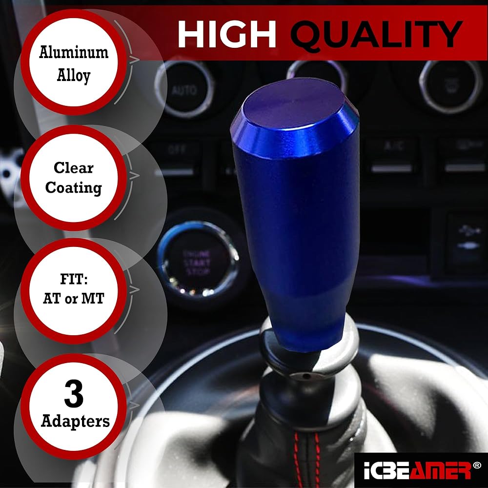 ICBEAMER Neo Chrome Aluminum 2.5" Shift Knob, Fit Automatic and 4, 5 and 6 Speed Manual Transmission Vehicles, Interior Car Gear Lever Stick Shift Handle Automotive Replacement Parts, 1 Piece