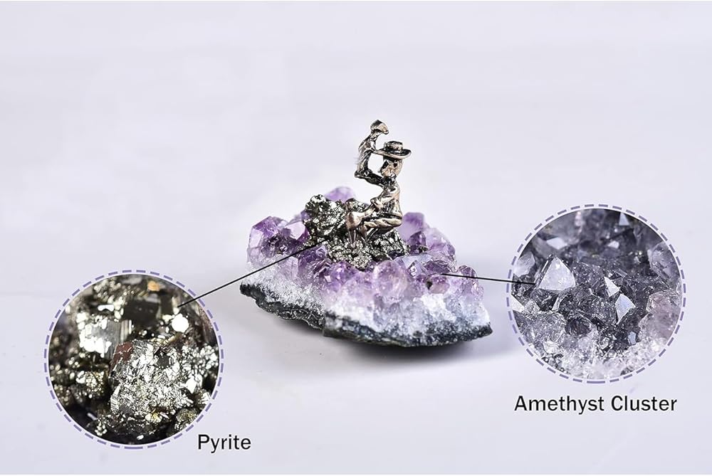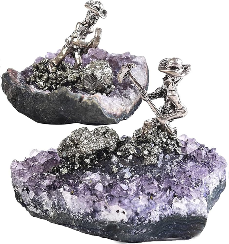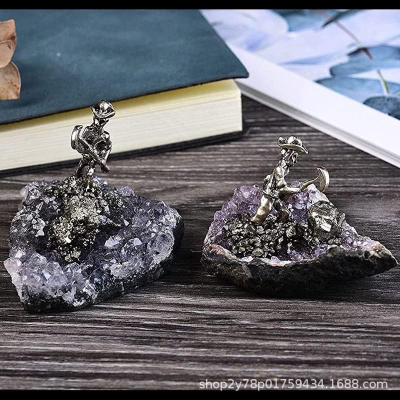 • Dimensions: Irregular Shape Amethyst Cluster with Miner Statue, Amethyst Block 4-6 cm/1.57-2.36 inches. Carefully selected and handcrafted, it showcases the miner scene.