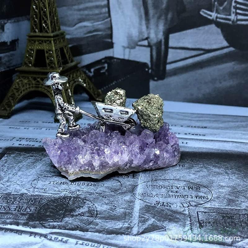 مجموعة الجمشت الخام مع تماثيل صغيرة لعمال المنجم مجموعة هدايا كريستالية فريدة سلة هدايا 1 قطعة