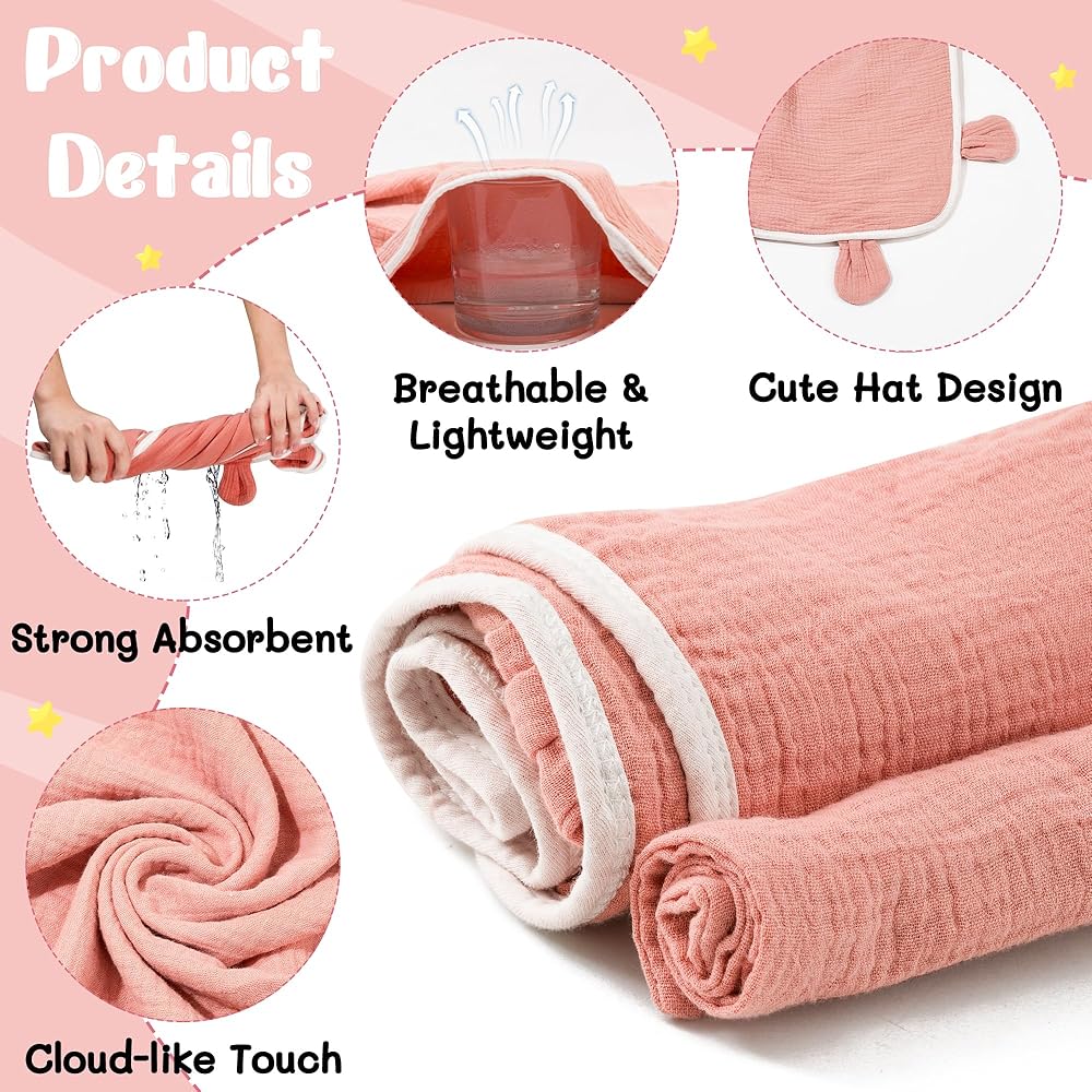 • قطن ناعم - منشفة الحمام ذات القلنسوة المصنوعة من قماش الموسلين للأطفال مصنوعة من نسيج قطني ناعم يشبه السحابة، آمنة في التركيب ومريحة في الملمس، صديقة بشكل خاص لجسم الطفل الحساس، سهلة الغسيل والتجفيف؛ صنعة متقنة، حواف مخيطة بدقة، آمنة للغسيل في الغسالة، سميكة وموثوقة، ليس من السهل تشويهها.
