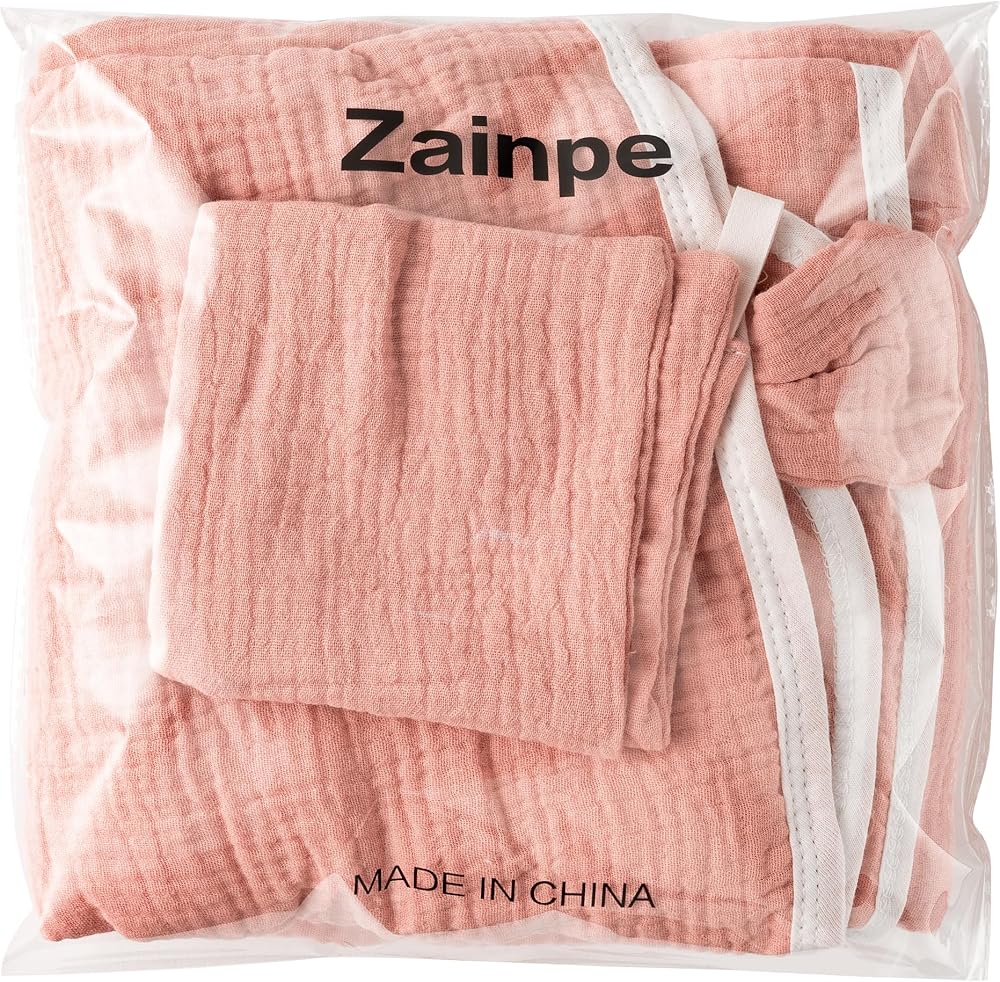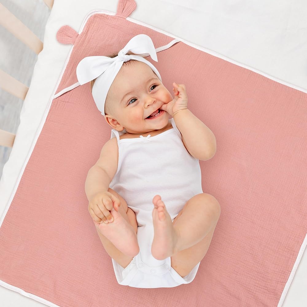 مجموعة منشفة ومنشفة بغطاء رأس للأطفال من Zainpe Muslin، بطانية منشفة حمام ناعمة ماصة مع آذان الدب اللطيفة، مناشف قطنية، هدايا استحمام للأطفال حديثي الولادة، الأولاد والبنات، مقاس 31.5 × 31.5 بوصة