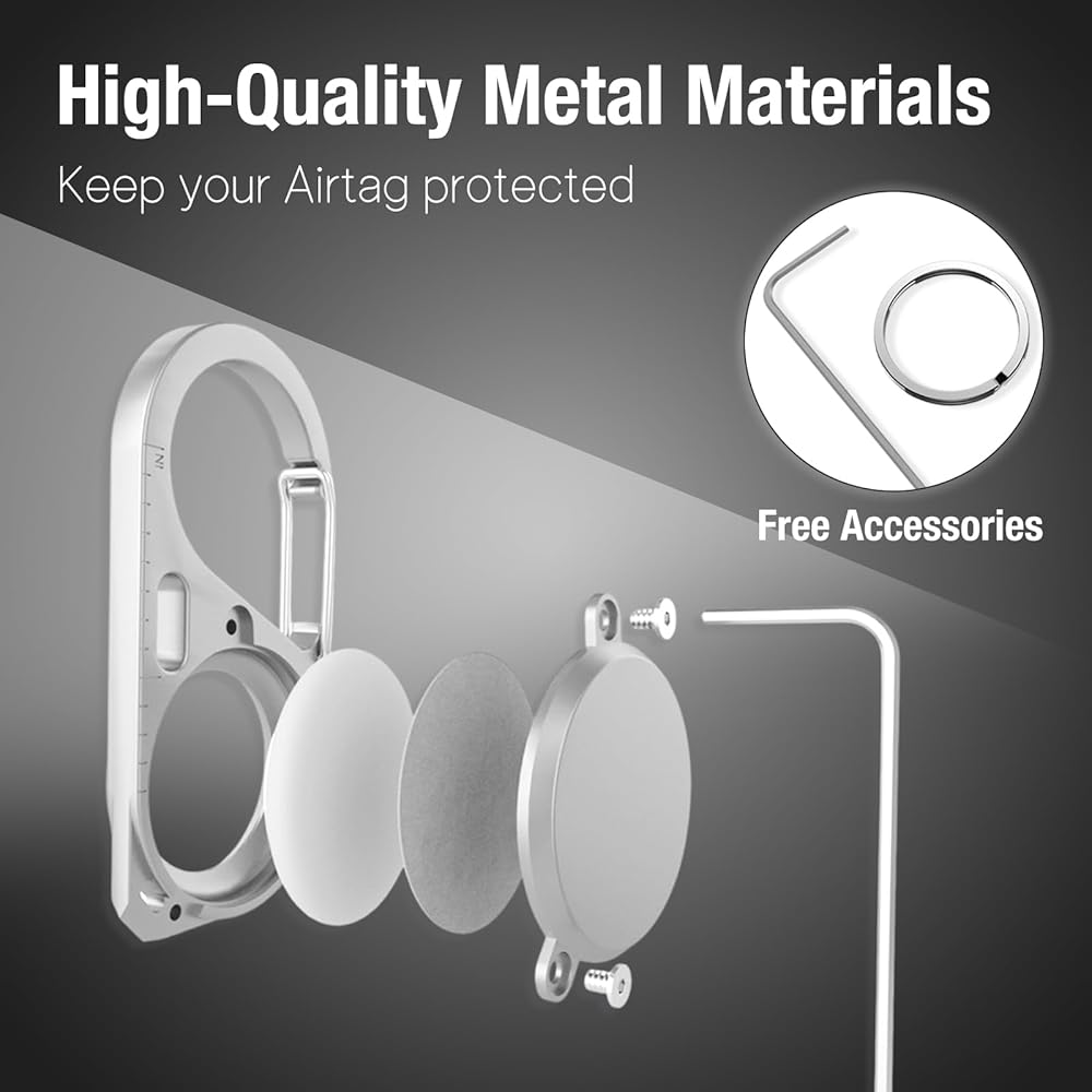 【Inclusive Package】- This set includes the metal main body of the AirTag holder, a keychain ring, a mini keychain ring, a screwdriver, a PU storage case, a worry-free 180-day warranty, and responsive customer service available within 12 hours. Don't hesitate to reach out if you require any assistance.