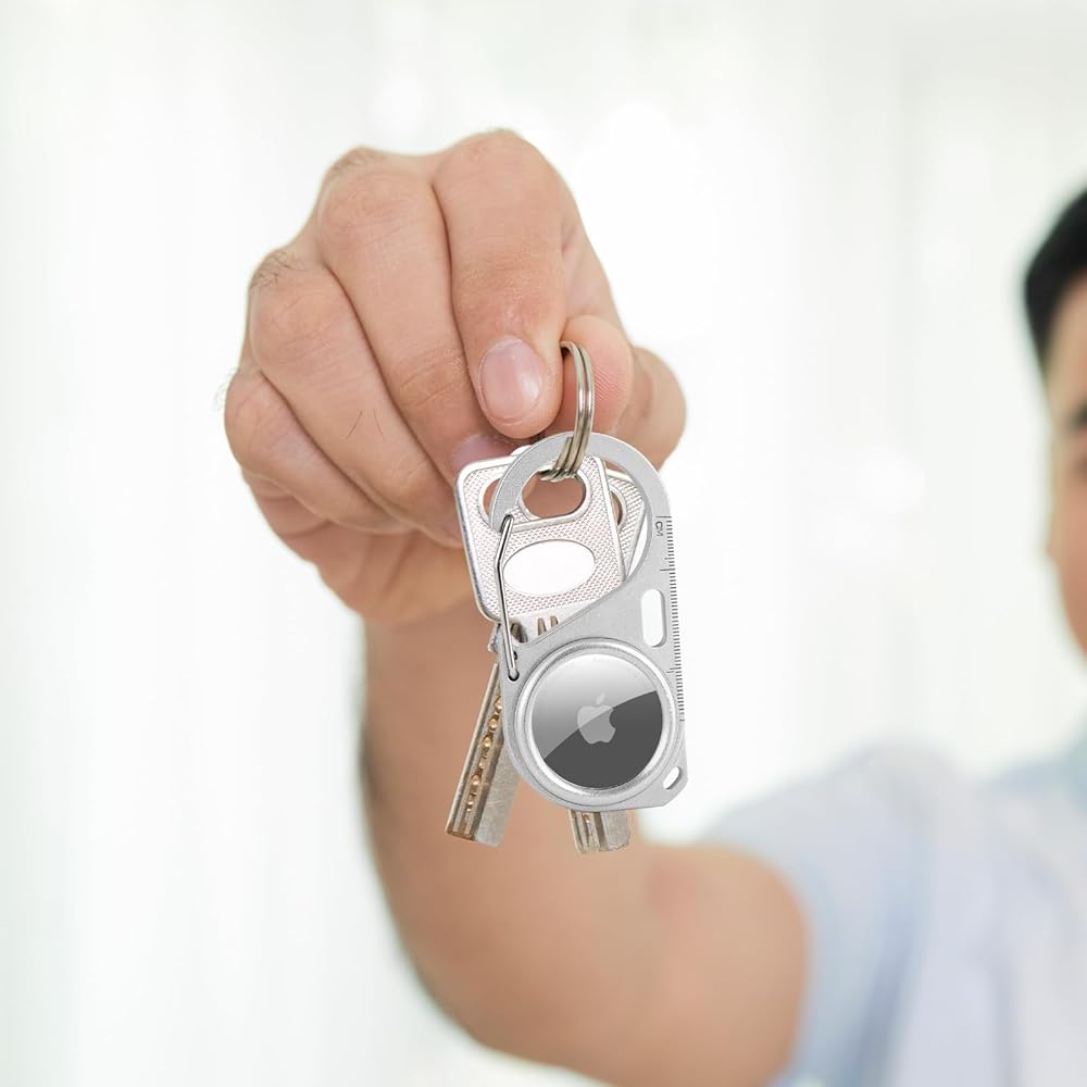 【Unique Design】This keychain ring is specially crafted for the 2021 AirTag, boasting a lightweight build and unique features such as a bear-shaped bottle opener, inch and centimeter ruler, and snap hook for everyday convenience. The premium metal alloy ensures a superior tactile experience and exceptional durability. (Please note: AirTag not included.)
