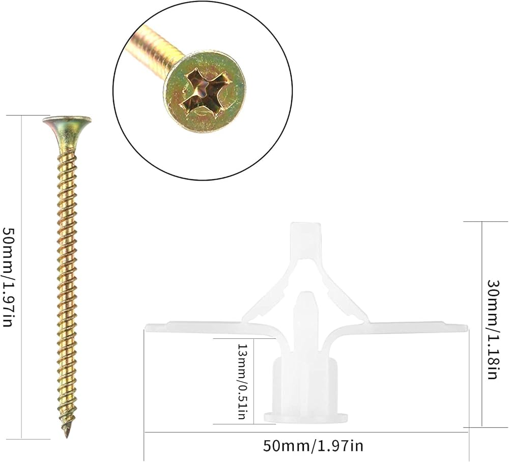 Quantity: 50 plastic anchor + 50pcs screw (total 100pcs)