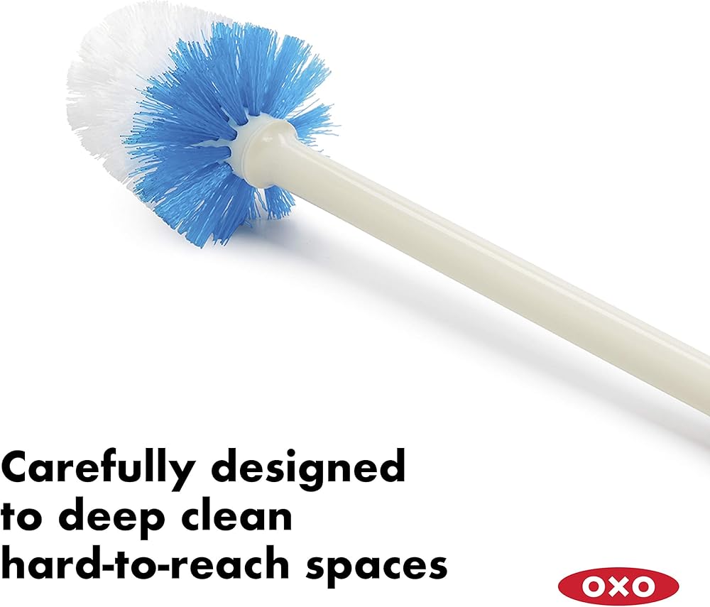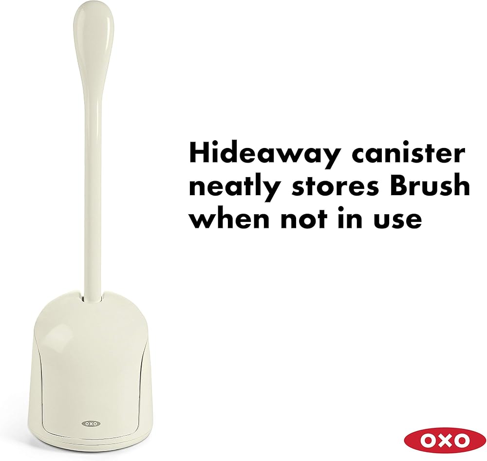 تُعد فرشاة وعلبة المرحاض المدمجة من أوكسو إضافة مثالية لأي حمام بأي حجم. يسمح تصميم العلبة الفريد بتخزين فرشاة المرحاض في متناول اليد. ما عليك سوى رفع الفرشاة وسيفتح باب العلبة تلقائيًا؛ شكل المقبض مريح في الإمساك، ويتميز رأس الفرشاة بشعيرات متينة وشكل مدبب للتنظيف العميق. بعد التنظيف، ما عليك سوى استبدال الفرشاة في العلبة لتخزين أنيق وصغير الحجم وصحي؛ صينية تنقيط مدمجة في الجزء السفلي من العلبة تلتقط الماء الزائد وتسمح له بالتبخر بسرعة