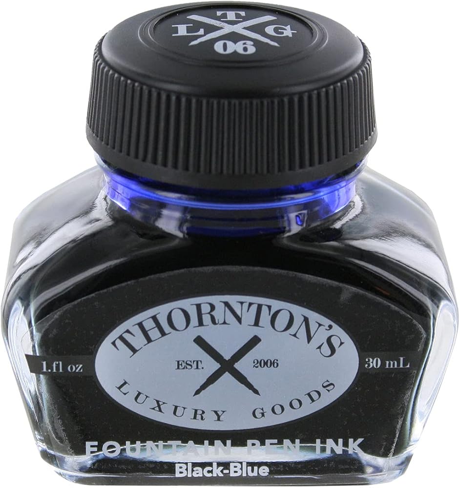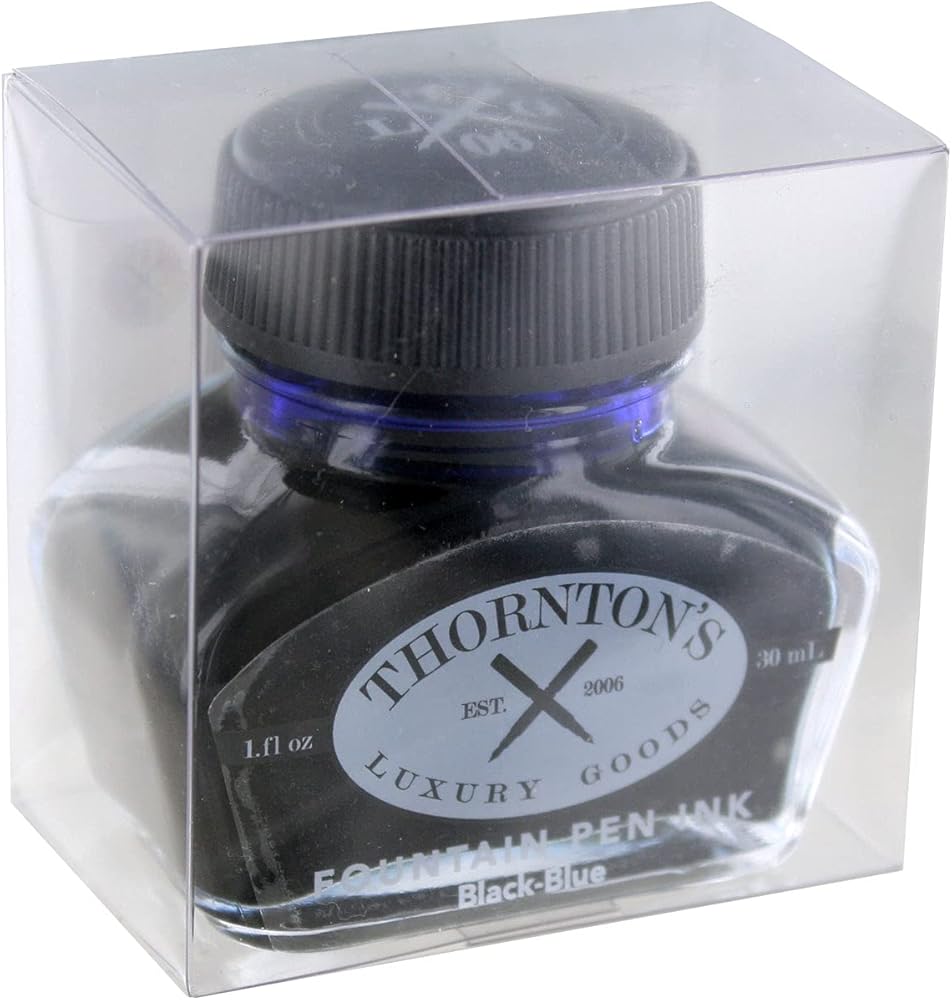 زجاجة حبر قلم حبر فاخر من Thornton's Luxury Goods 30 مل | كتابة سلسة خالية من العيوب | مناسب لجميع العلامات التجارية وأقلام الخط | اللوازم المكتبية (أسود-أزرق)