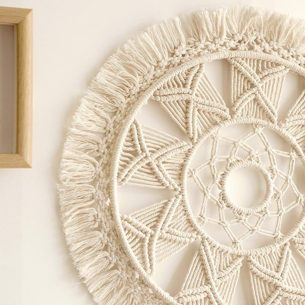 هذا الفن اللطيف للتعليق على الحائط مصنوع من حبل قطني عالي الجودة، نمط ماندالا سوف يجذب الأنظار، مما يجعل منزلك ذو طراز عالٍ مزخرف وأنيق.