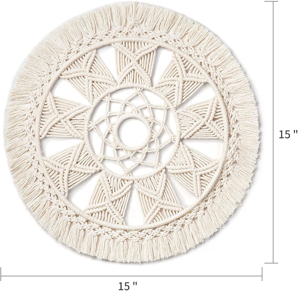 مقاس رائع: 38.1 سم طول × 38.1 سم عرض، إنه مظهر جميل جدًا وديكور جداري أنيق. نصائح ودية: بما أن المنتج يتم شحنه مطويًا. سوف تتجعد المكرامية قليلاً عند فتح العبوة، يرجى تمشيط هامش المكرامية بالمشط لاستعادة الشكل