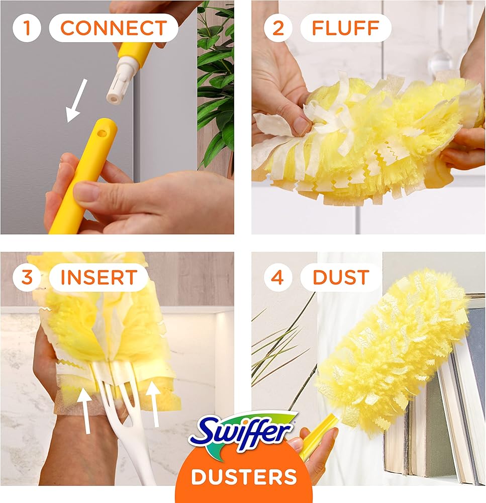 - سويفر منفضة غبار بمقبض قابل للتمدد يمتد حتى ثلاثة أقدام للوصول إلى الغبار في مناطق أكثر