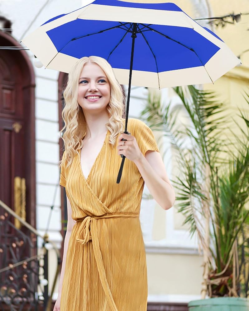 ☂ Collapsible Umbrella - Fold size 13'' and weighing 13.6 oz when is indeed lightweight and convenient to carry around, can easily fit into a handbag, or even a larger pocket.