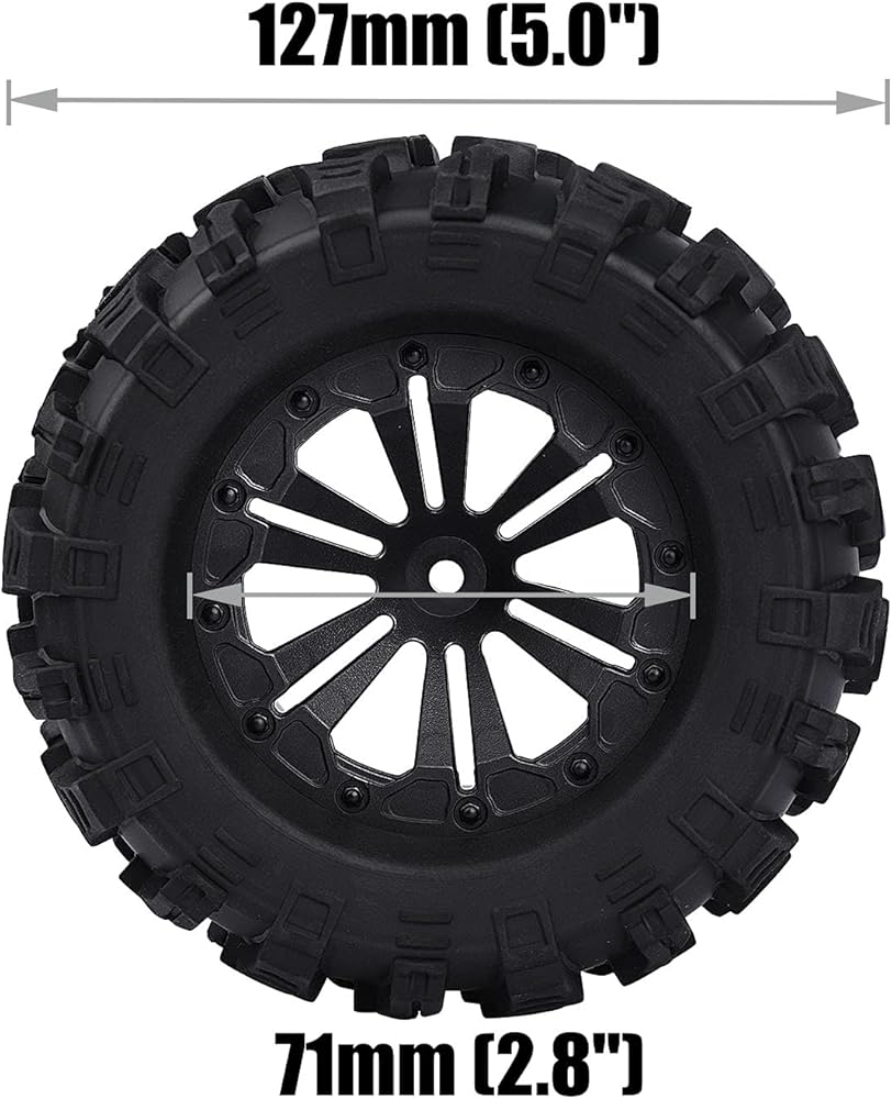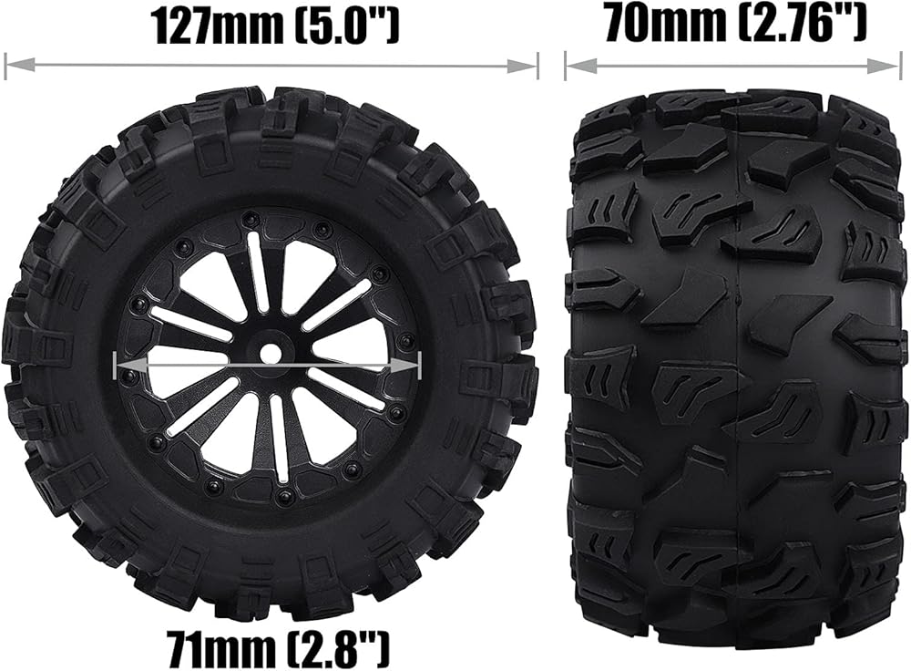 قطر الإطار (الارتفاع): 5.0 بوصة (127 ملم)؛ قطر العجلة: 2.8 بوصة (71 ملم)؛ العرض: 2.68 بوصة (70 ملم)؛ سداسي: 12 ملم؛ قطر المحور: 0.2 بوصة (5 ملم)