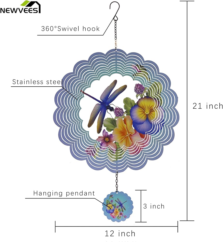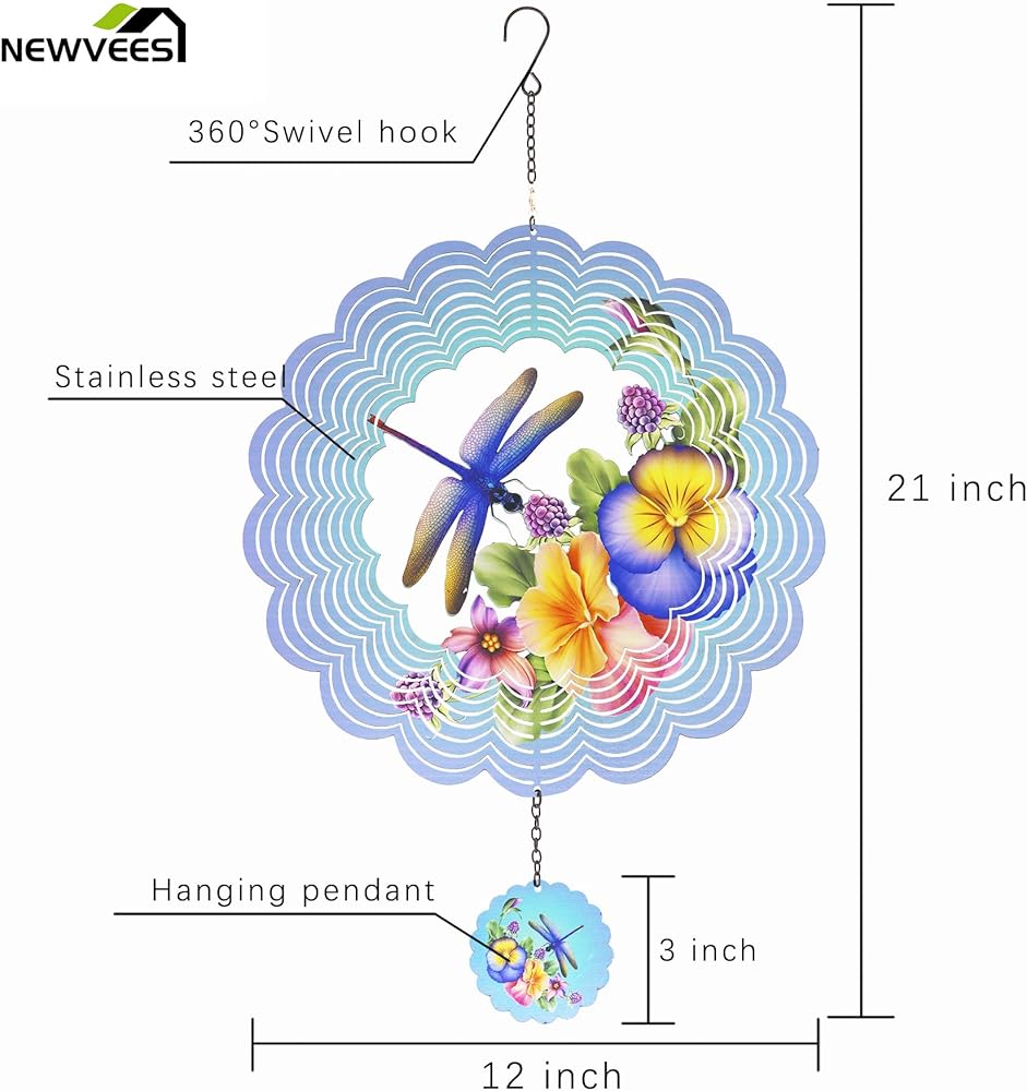 • 【3D Kinetic Wind Spinner Decor】The magical hummingbird pattern decorative wind spinner uses PUV printing technology, with a shinning paint surface that sparkles when rotated. The unique design combines meaningful animal patterns and 3D streaming effects to make it look more visual. Suitable for decorating your garden and courtyard.