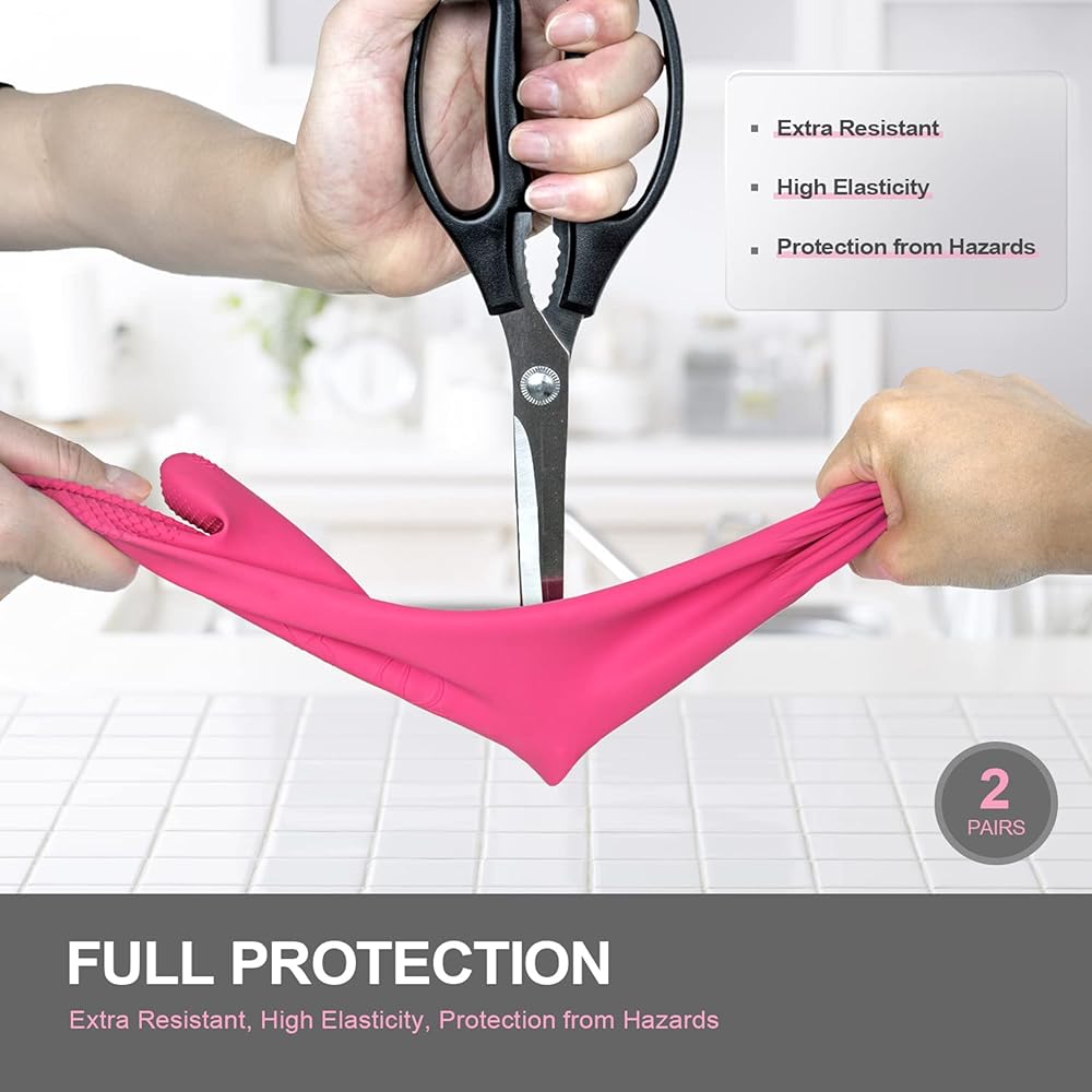 زوجان من القفازات يواجه وظيفة مختلفة بشكل أفضل. يمكن استخدامها لتنظيف المطبخ والحمام وغسيل السيارة، ويمكنها حماية يديك من التعرض للأذى بسبب السوائل المسببة للتآكل وما إلى ذلك.